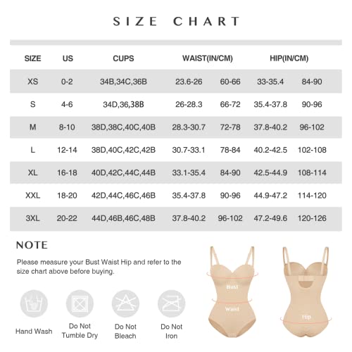 • 【BUILT-IN BRA BODYSUIT WITH REMOVABLE & ADJUSTABLE STRAPS】Our shapewear bodysuit with built in bra and the underwire cups provides full boob coverage and support, which make your breast looks more pretty and alluring! Removable & adjustable straps can provide you strapless bodysuit and fit flexibility. 3 row hooks on the back can be adjusted according to your breast shape. No matter you wear body briefer shapewear under dress or bodysuit tops with pants, it'll shape you a charming figure.