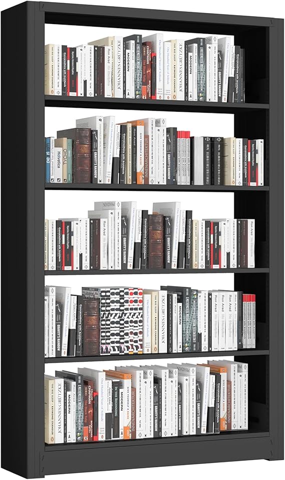 69" Tall Bookshelf, 5-Tier Bookcase with Adjustable Storage Shelves, Floor Standing Unit, Black Metal Bookcase for Home Office, Living Room, Bed Room, Library, Black Shelves (Black)