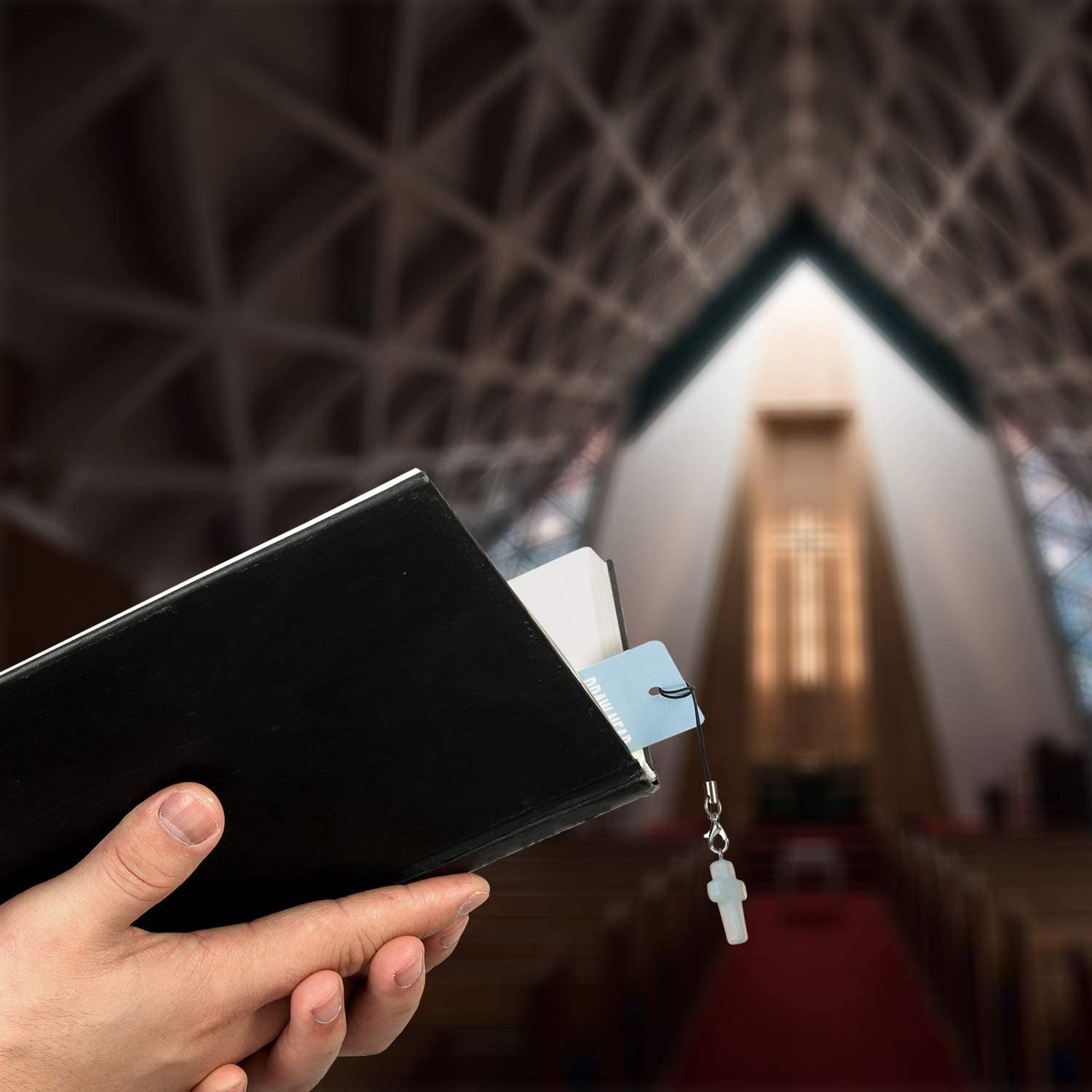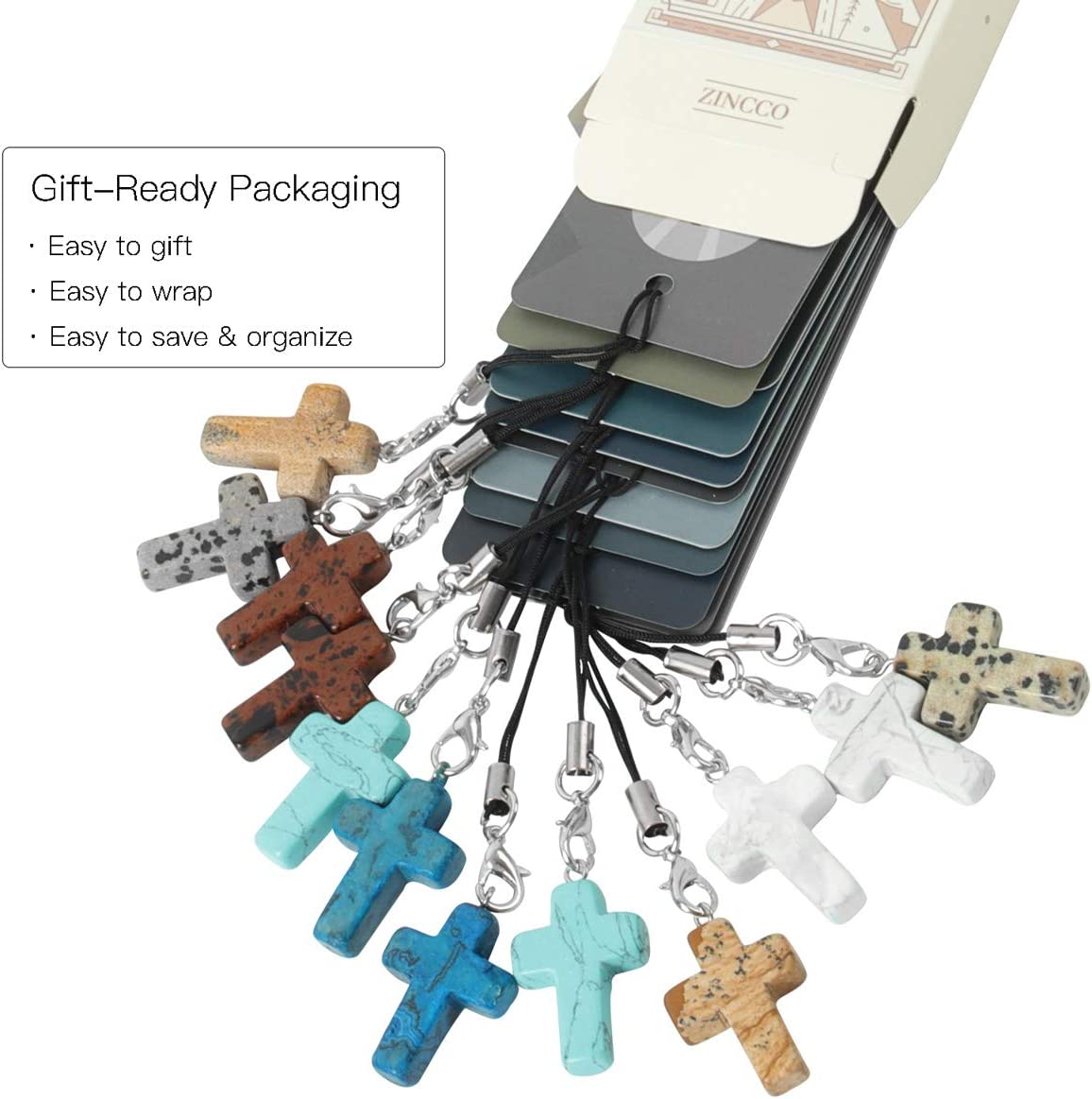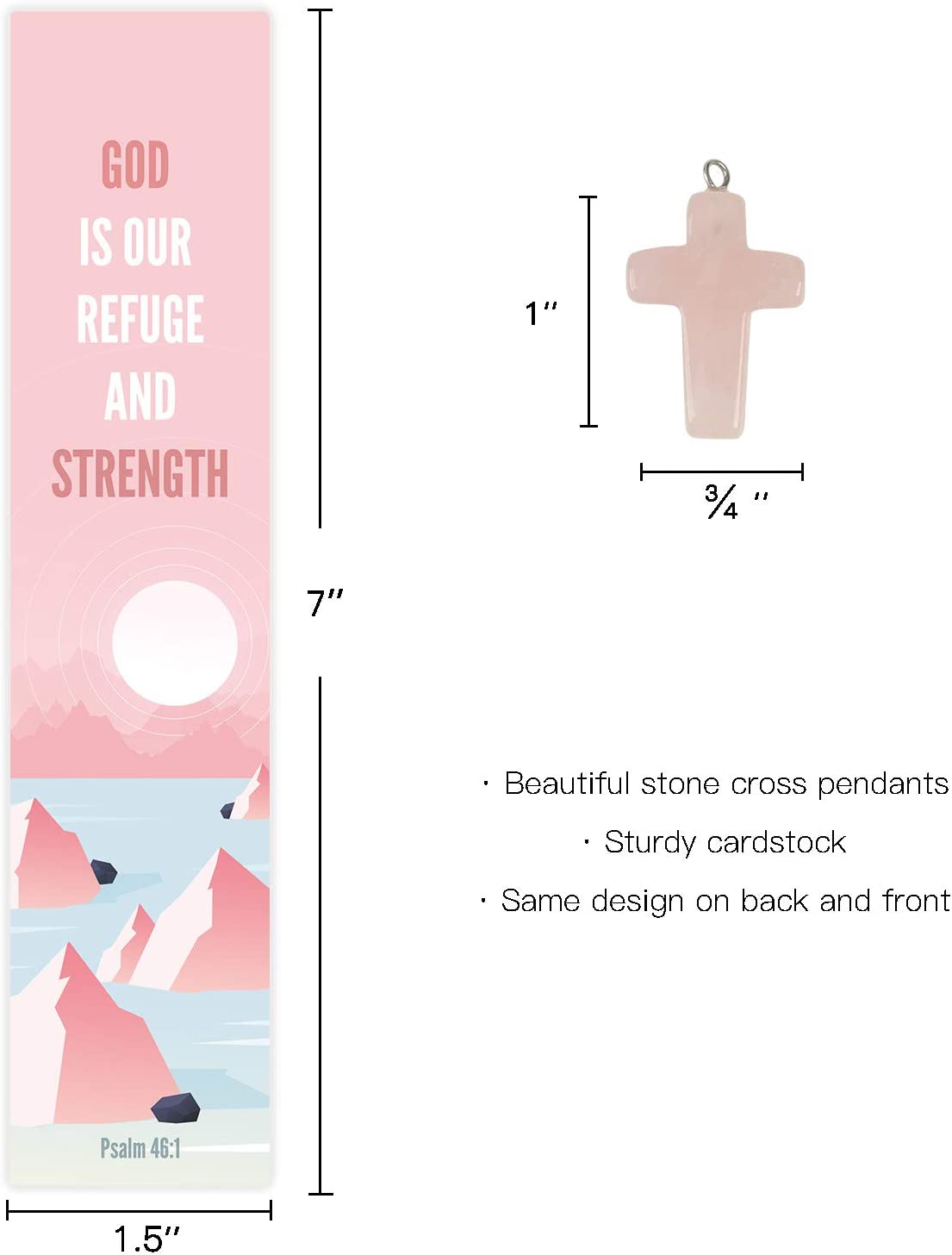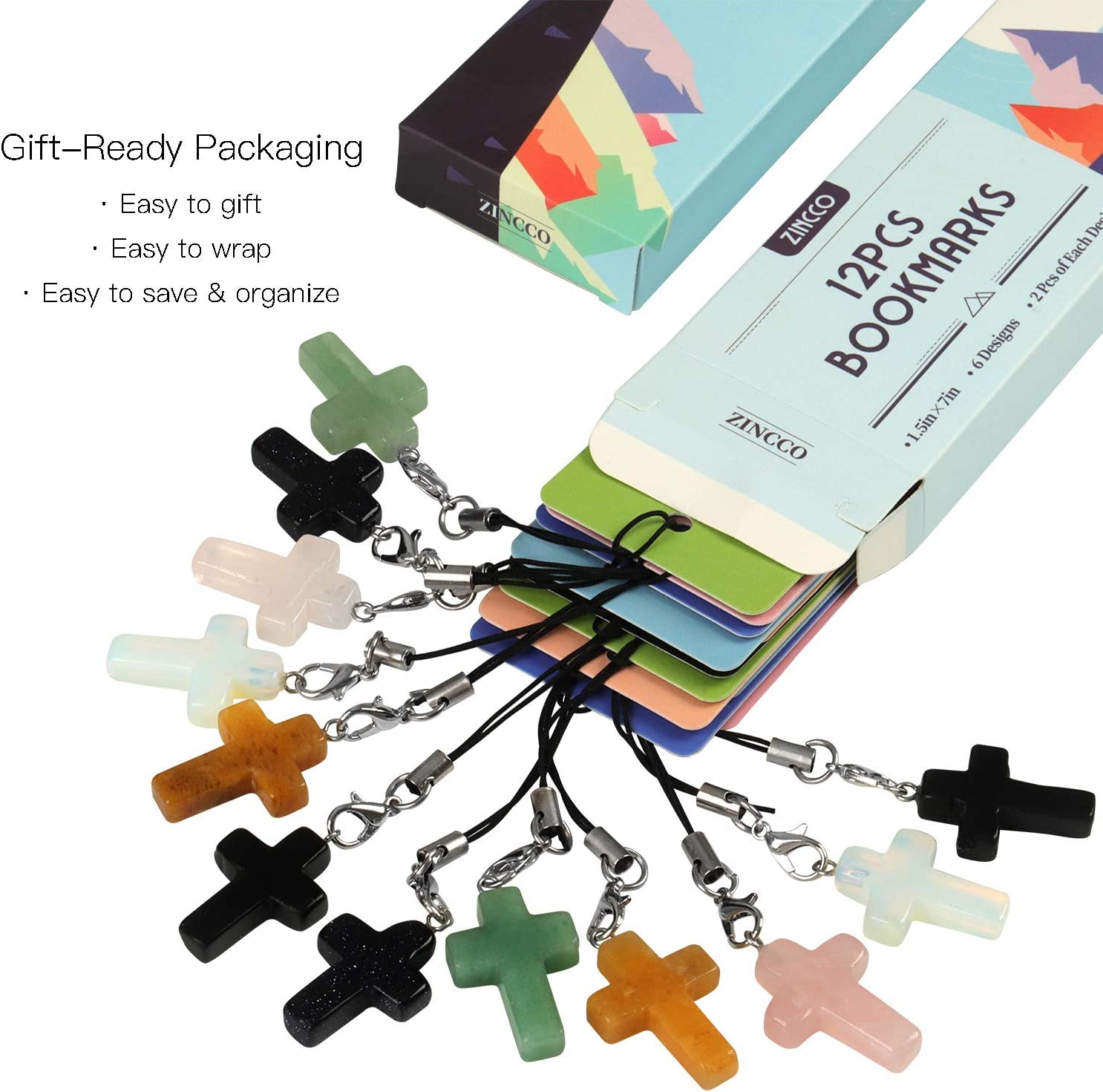 • STONE CROSS PENDANTS: Natural quartz stone, match each bookmark by color, 6 different colors(2 of each, 12 in total), beautiful and great quality, about 1" x 0.75".