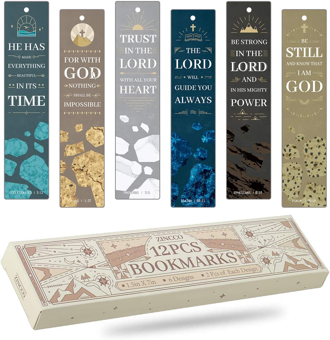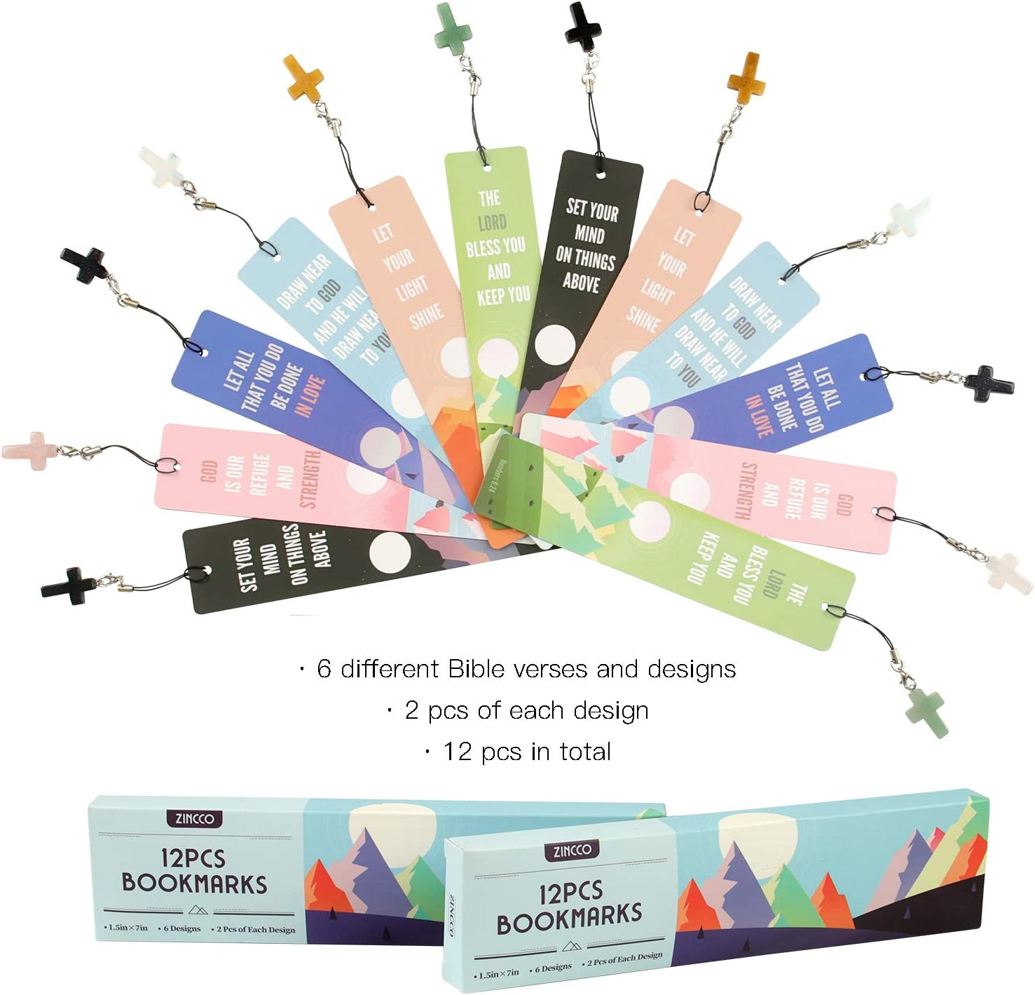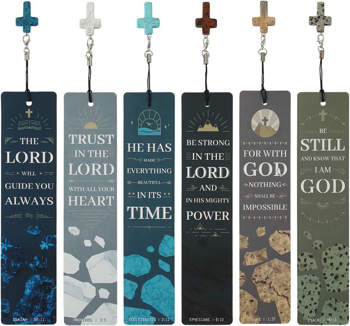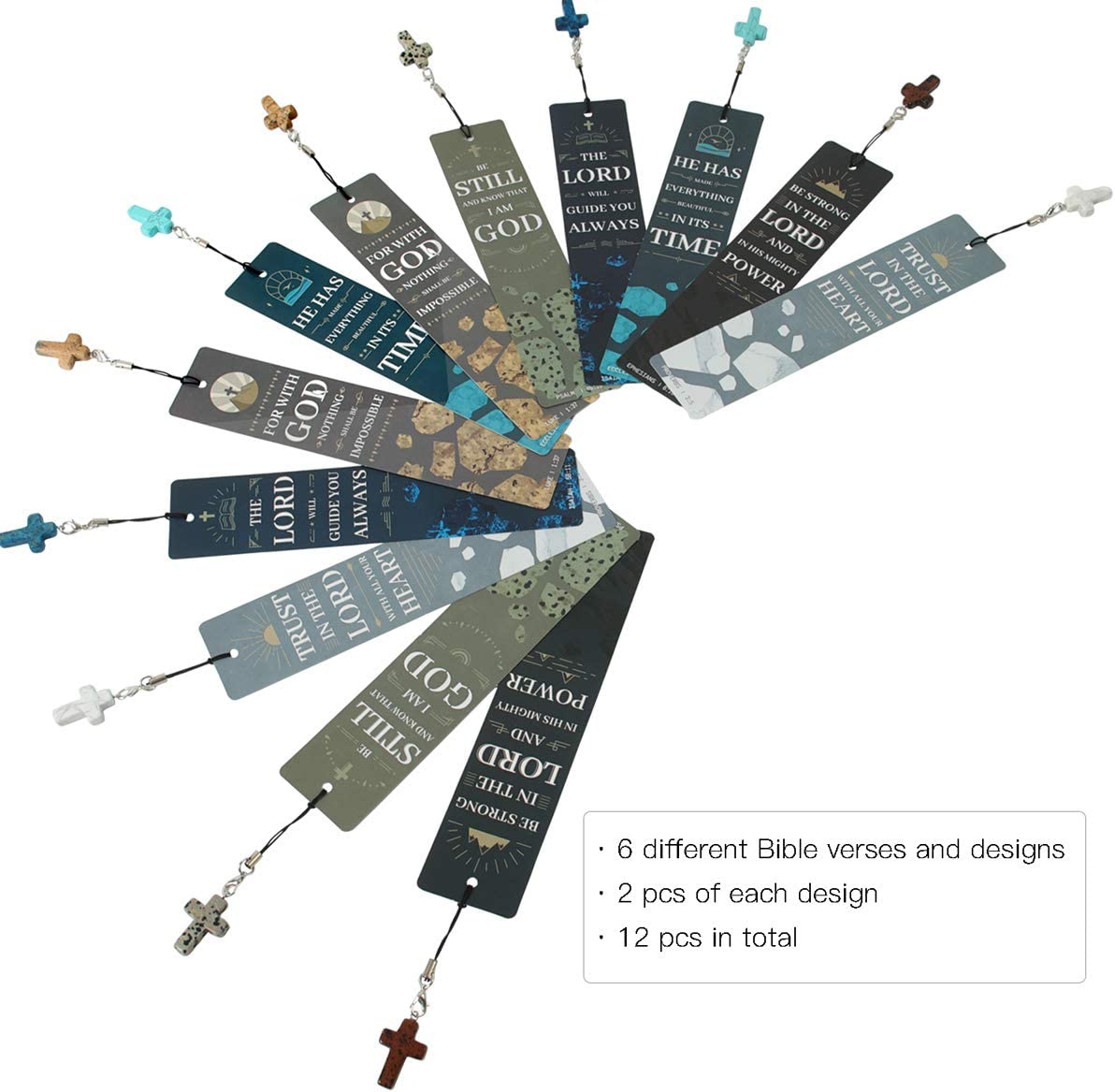 • UNIQUE DESIGNS: Bookmarks with Bible verses and cross shape stone pendants, 6 different Bible verses and designs(2 of each, 12 in total), 1.5" x 7".