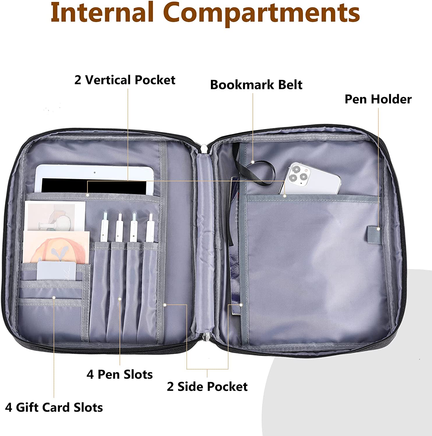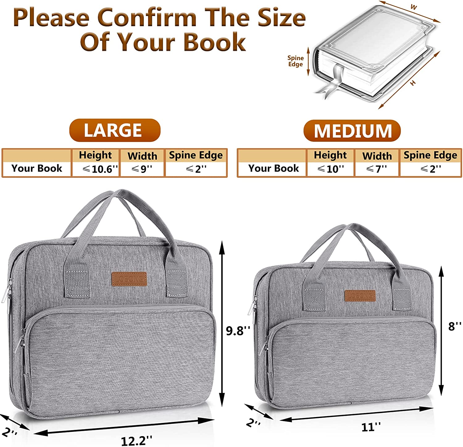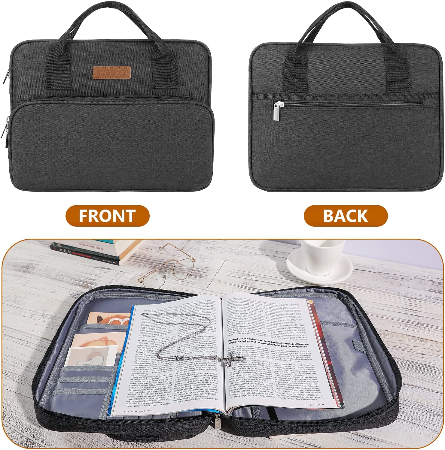 • Multi-functional: This large bible carrying case can be used as a handbag, briefcase, bible tote bag, makeup bag, book cover, tablet case, Bible study bookbag, etc.