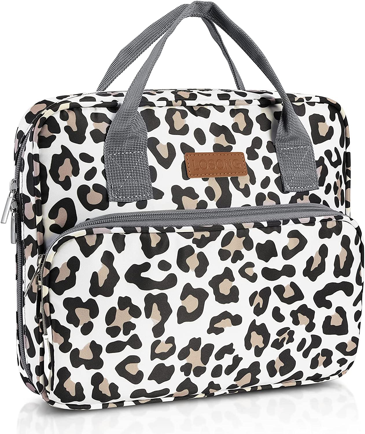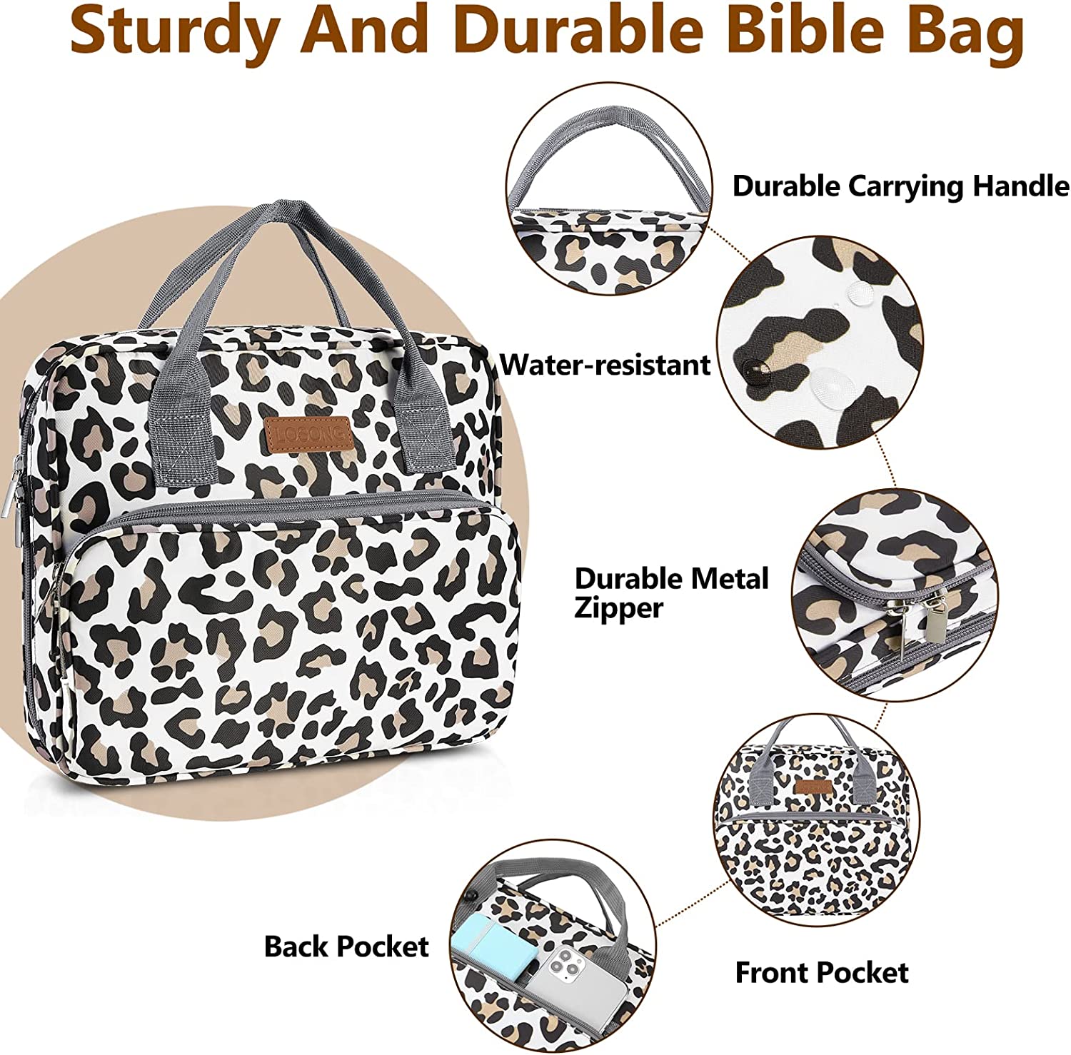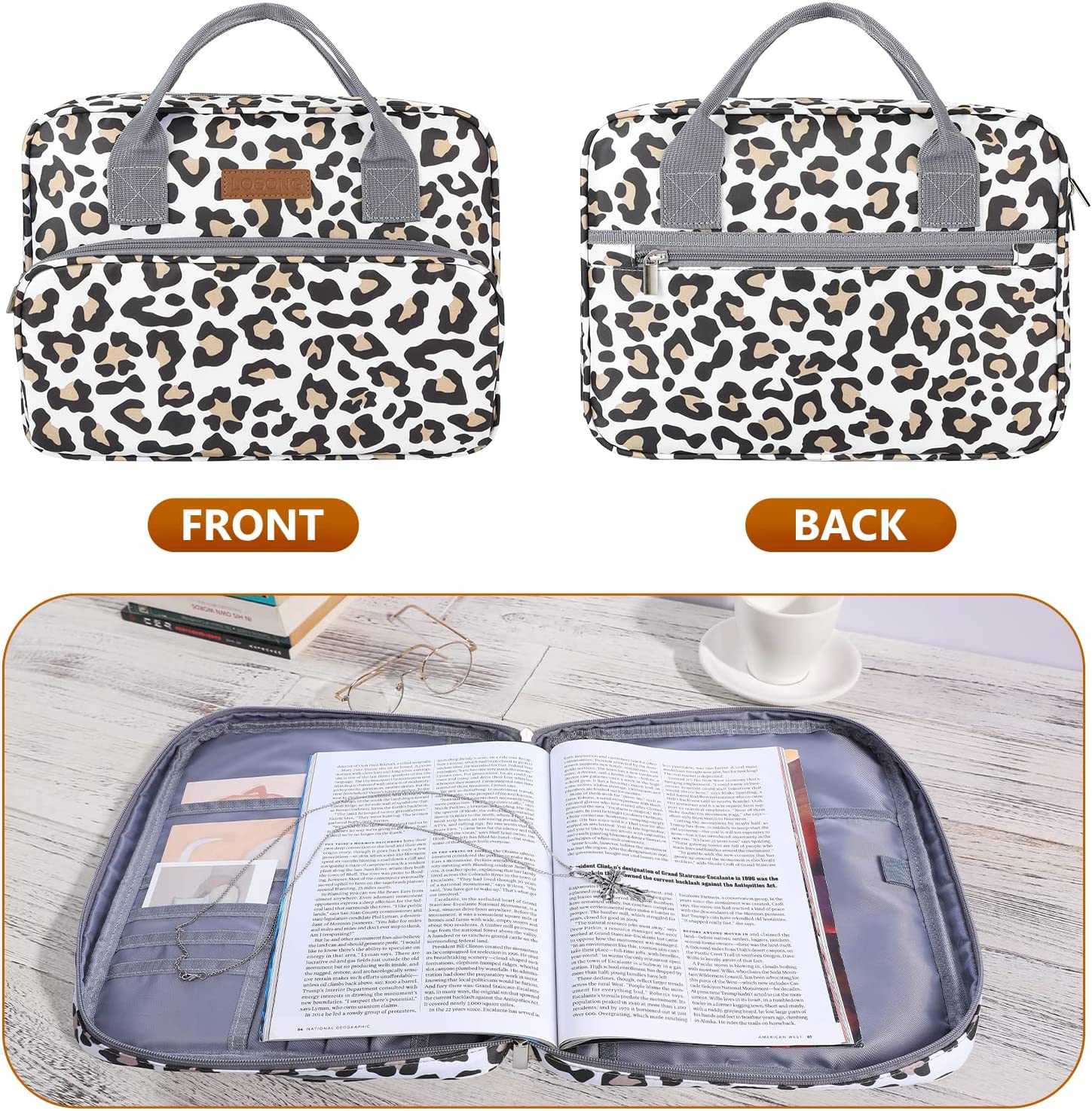 Bible Cover for Women, Losong Large Bible Carrying Book Case with Durable Handle & Multi-Pockets Organizer Church Tote for Girls Catholic Christian Gifts, Fits for Study Bible Protective Bag Leopard