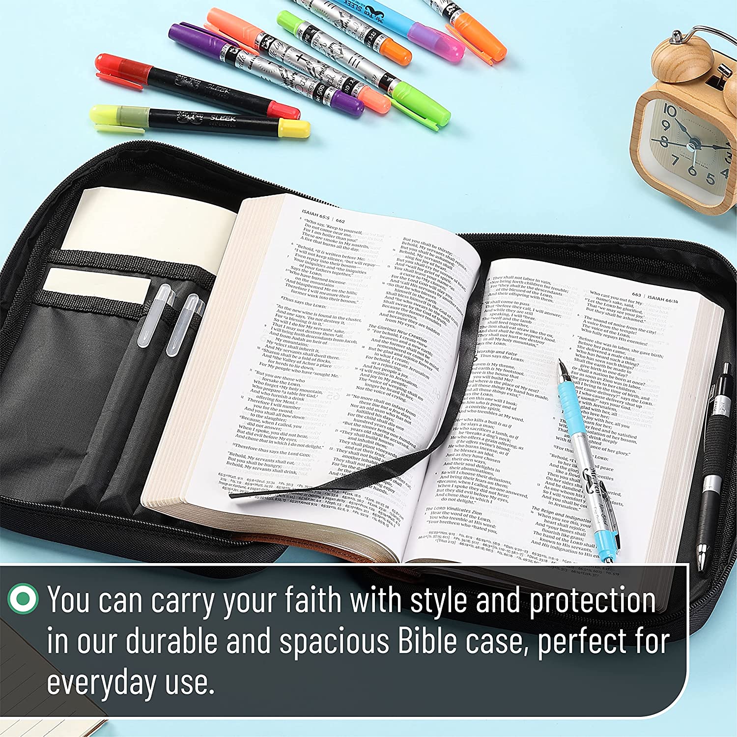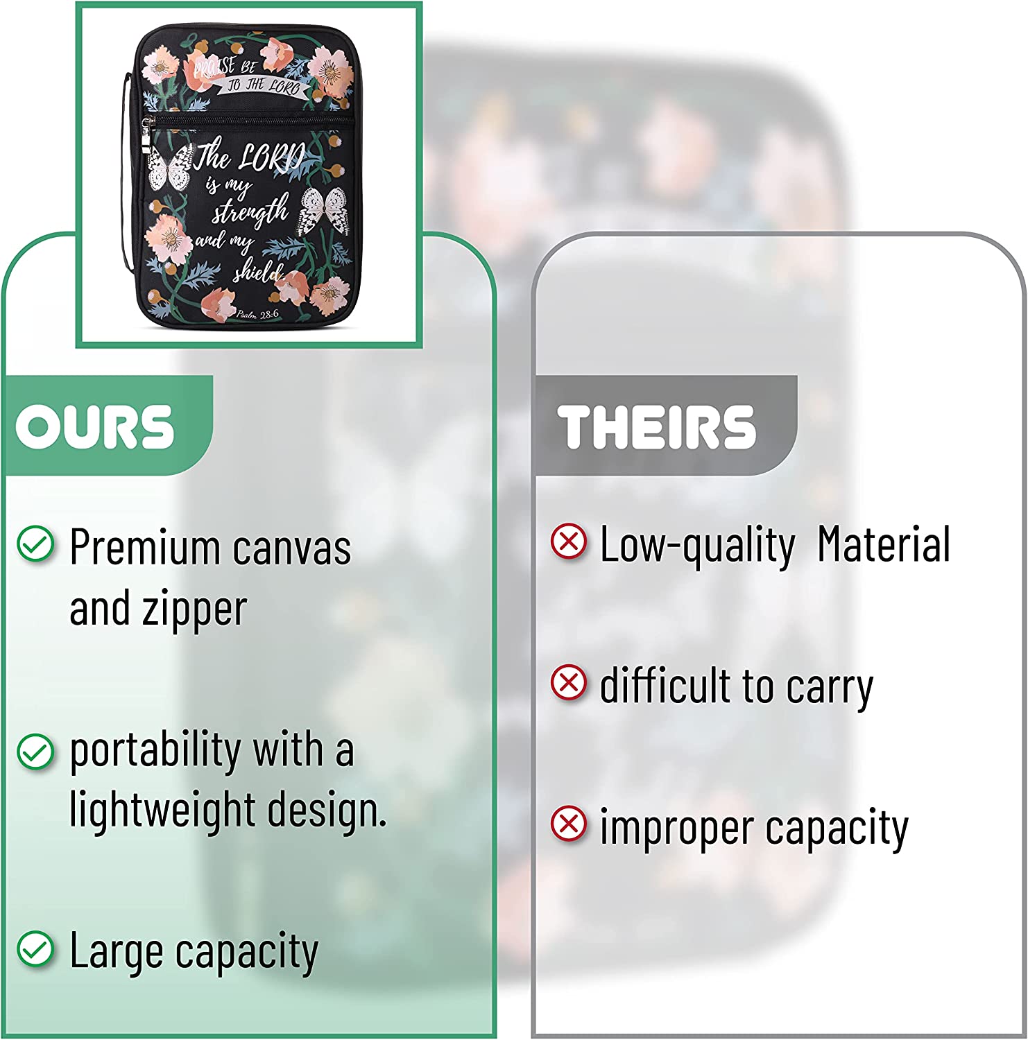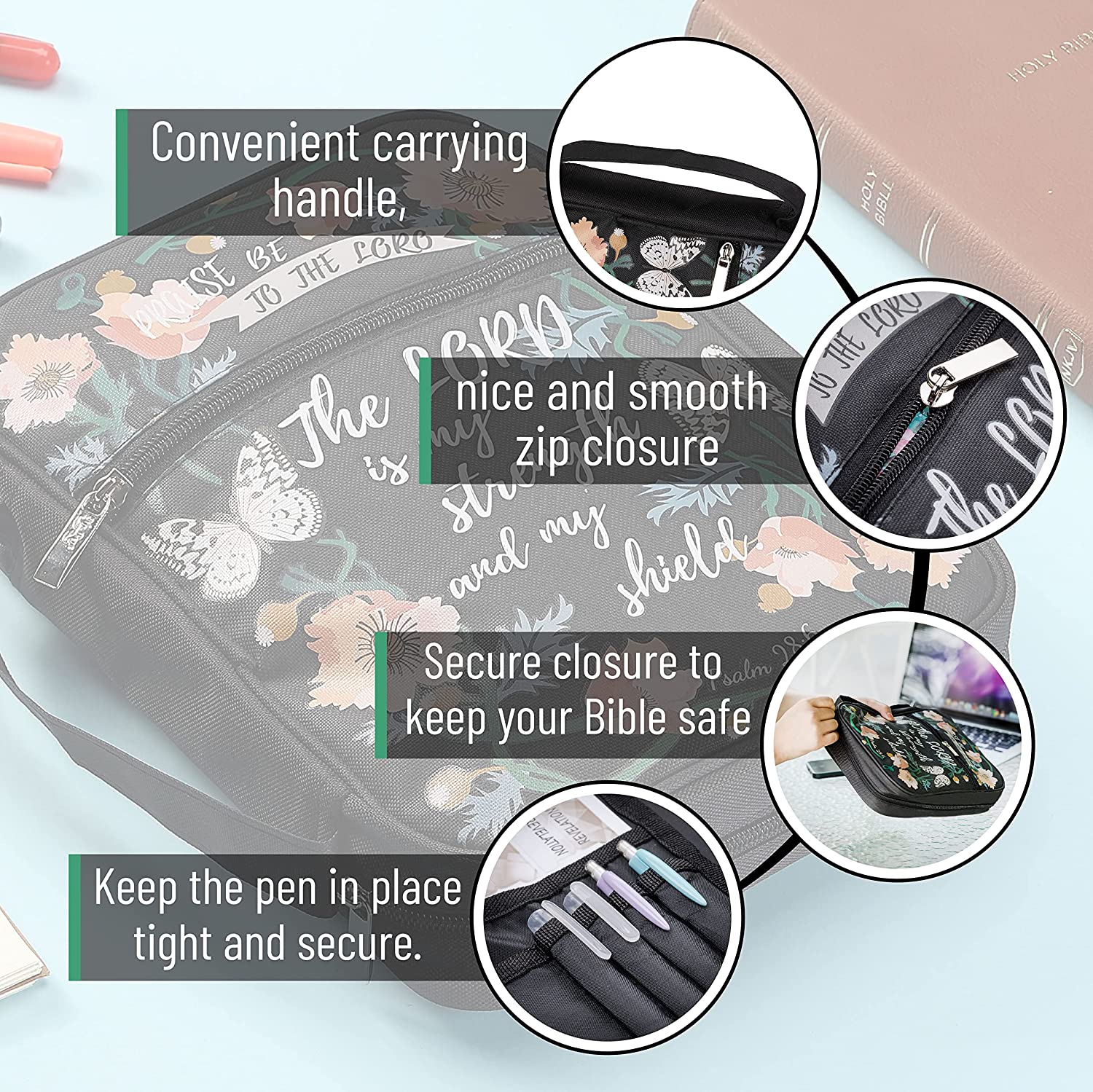 • Mr. Pen Bible Cover made from sturdy canvas with scripture printed in the front