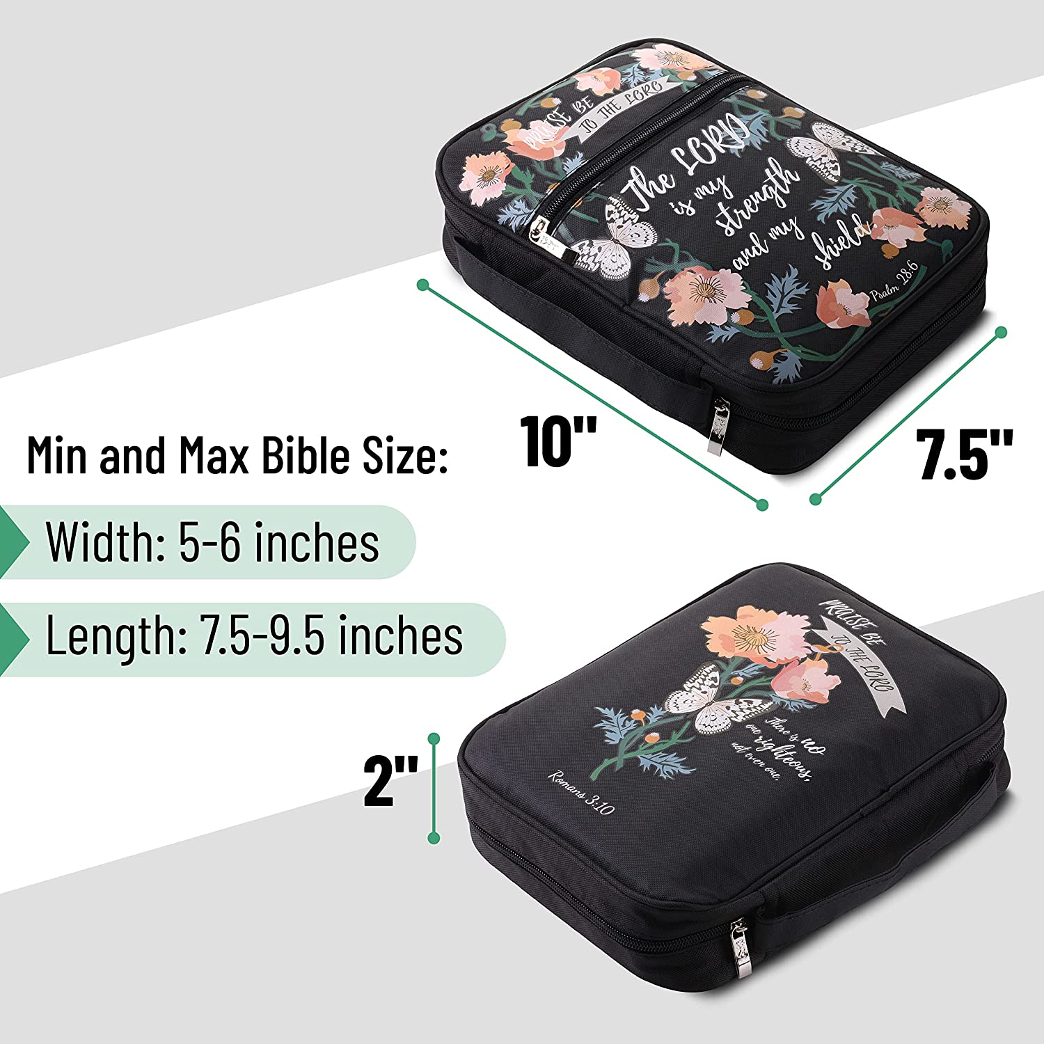 • What Size Bible Will Fit? Width: 5-6 inches, Length: 7.5-9.5 inches