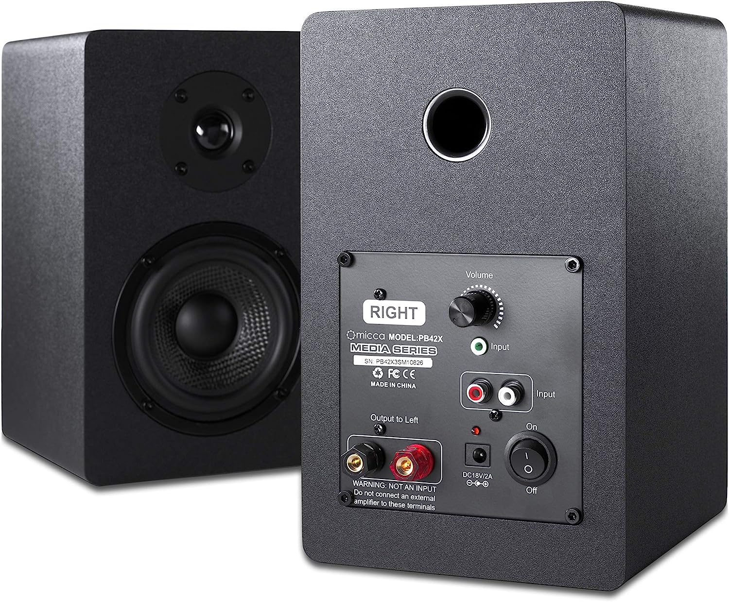 Micca PB42X Powered Bookshelf Speakers, 30-Watt RMS Power, Active Near Field Studio Monitors, 2-Way (Black, Pair)