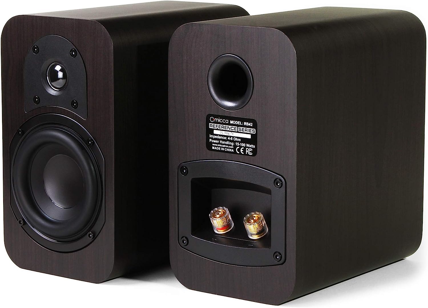Micca RB42 Reference Bookshelf Speaker with 4-Inch Woofer and Silk Tweeter (Dark Walnut, Pair)