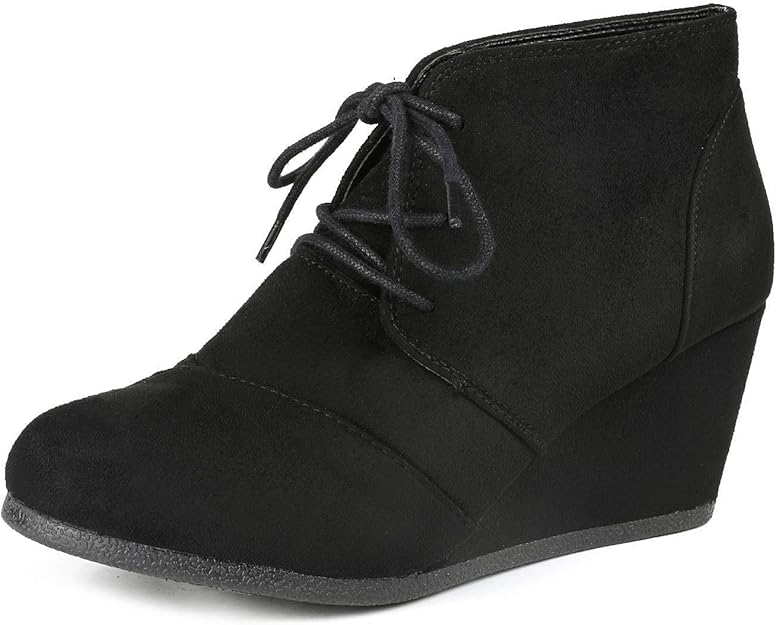 DREAM PAIRS Women's Casual Fashion Lace Up Low Wedge Heel Booties Shoe