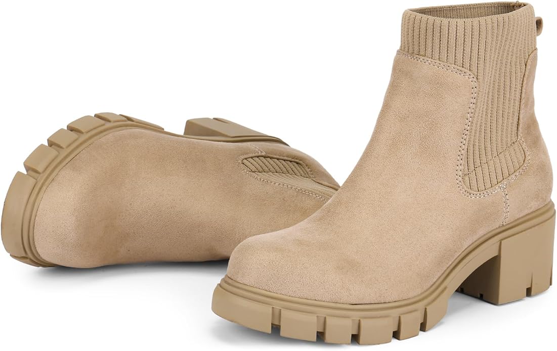 FITORY Women's Ankle Boots Comfy Chelsea Mid Heel Elastic Chunky Heel Lug Sole Booties Size 6-11