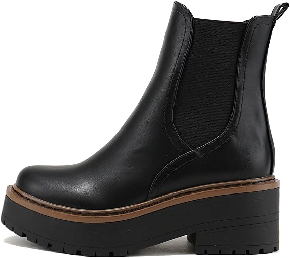 Soda YOSSI ~ Women's Chelsea Chunky Lug Sole Mid Heel Ankle Bootie Double Elastic