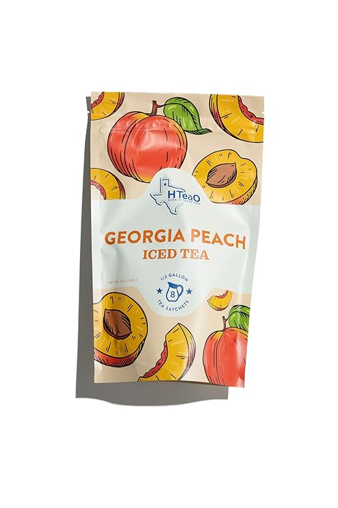 HTeaO Iced Tea Sachets - Georgia Peach Black Tea Mix for Cold Brew - 4 Gallons Per Package - Real Texas-Style Flavored Iced Tea in 5 Minutes (Pack of 8 Sachet Bags)