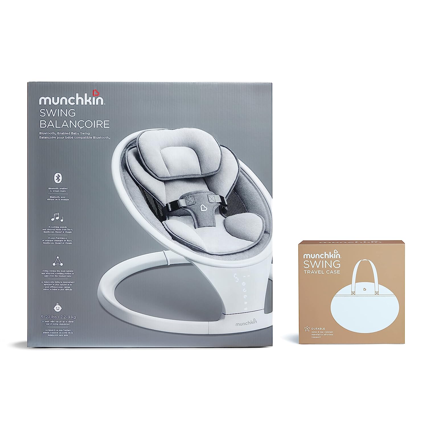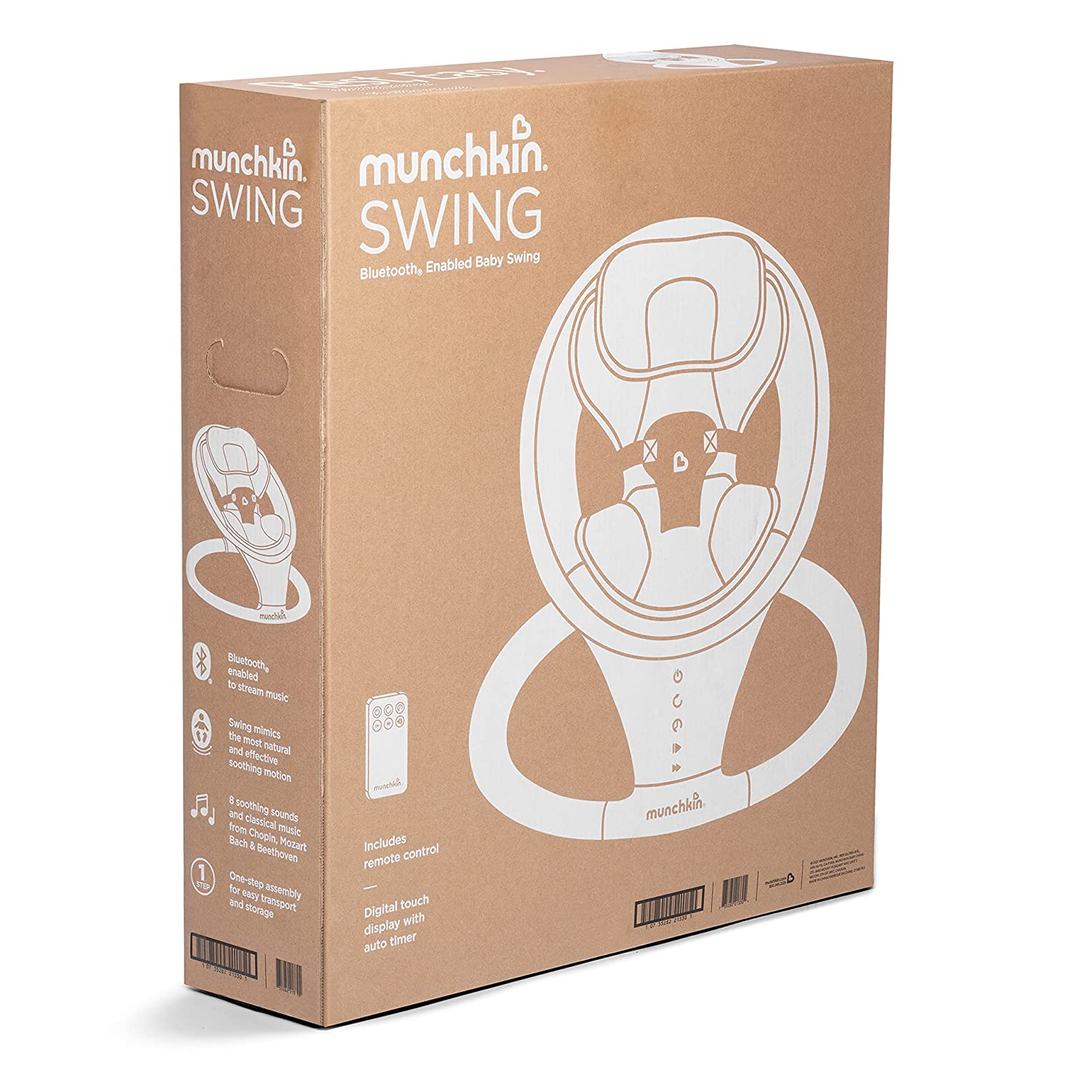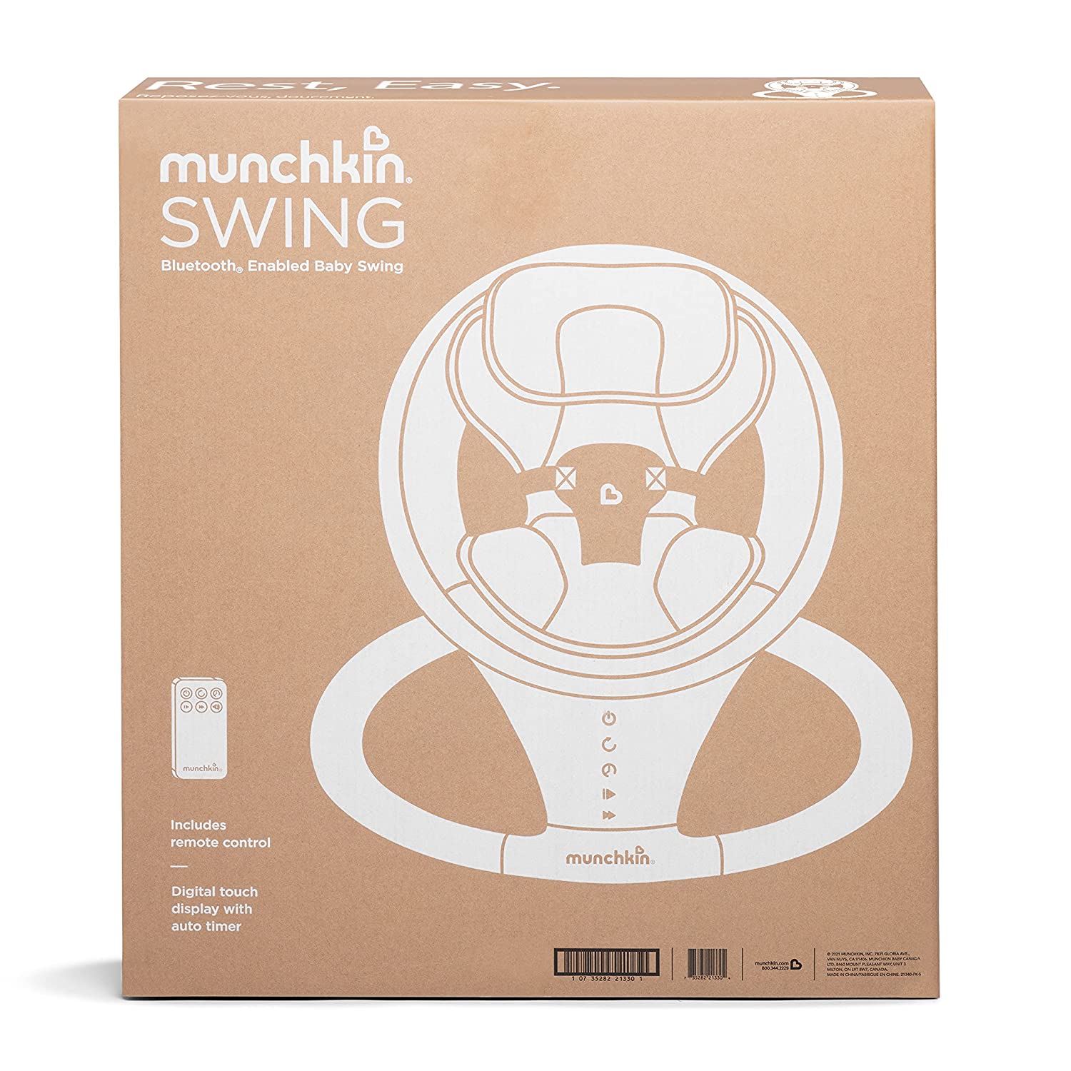 Munchkin® Bluetooth Enabled Lightweight Baby Swing with Natural Sway in 5 Ranges of Motion, Includes Remote Control
