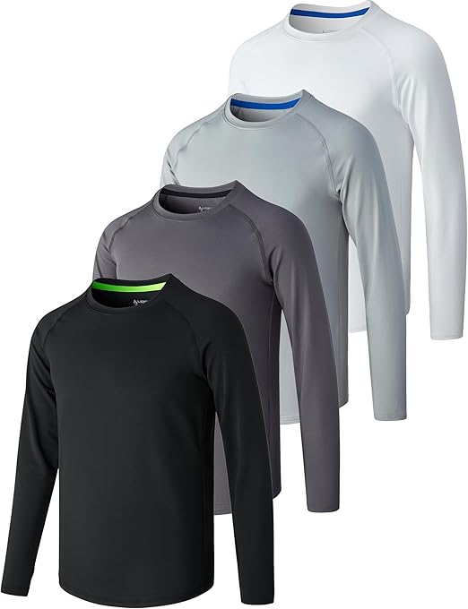 4 Pack: Youth Boys Long Sleeve Shirts Dry Fit Athletic Clothes for Teens, Kids Active Performance Tshirts with Thumb Holes