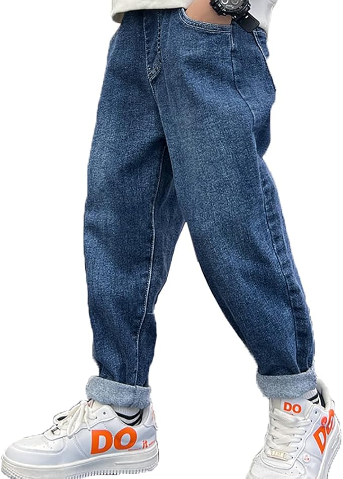 ABALACOCO Big Boys' Kids Jeans Cotton Pull-On Soft Denim Pants Stretch Waist Casual Wear School Pants 5-13T