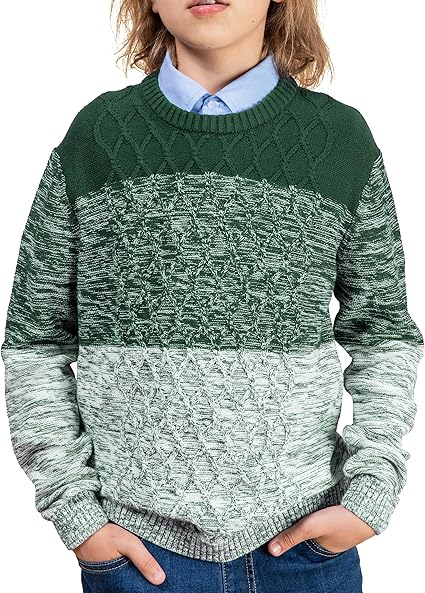 BOBOYOYO Boys Sweaters 100% Cotton Cable Knit Stripe Sweater Kids Crew Neck Pullover Toddler School Uniform Child Casual Top