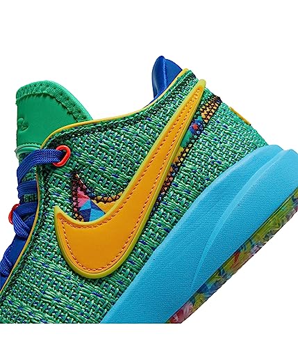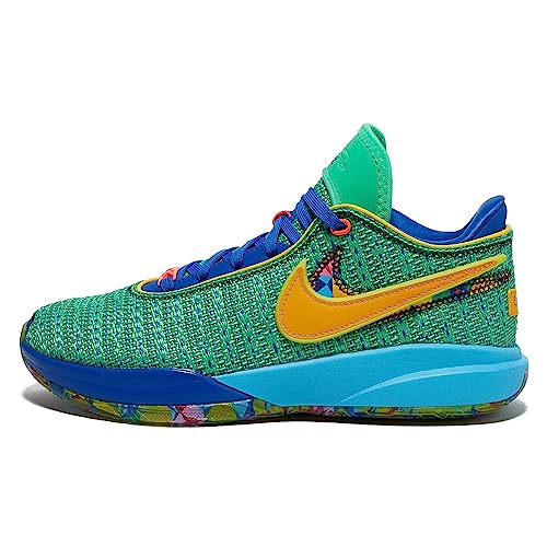 Details: He's clutch. He's an MVP. He's a champion. LeBron James is one of the greatest ever. Celebrate 2 decades of dominance with the LeBron XX (or LeBron 20)the 20th edition of The King's signature basketball shoes. Their super lightweight and breathable feel, plus Zoom Air cushioning, help you run, jump and compete to the final buzzer. Bright colors are made to pop, and designed only for this special all-star edition. Cool Moves Like The King. Breathable mesh is soft and supportive to help your feet stay cool and comfortable while running around the court. Play in Air. Snappy and responsive, Zoom Air cushioning helps provide a quick-off-the-ground sensation. Soft foam underfoot adds extra lightweight cushioning. Court Control. Full-length rubber sole provides grip and traction on the court so you can feel confident with every cut and pivot. Shoot for the Stars. This special edition is our all-star colorway when basketball's best players come together. It's inspired by taking LeBron's logo through a kaleidoscope lens for a bright colorful design. Classic laces.