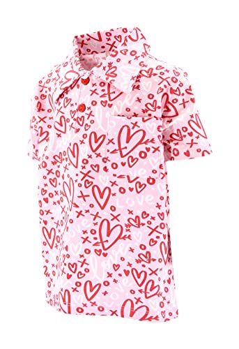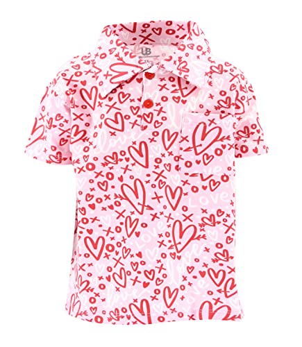 Unique Baby Boys Valentines Day XO Love Polo Shirt (8Y, Pink)