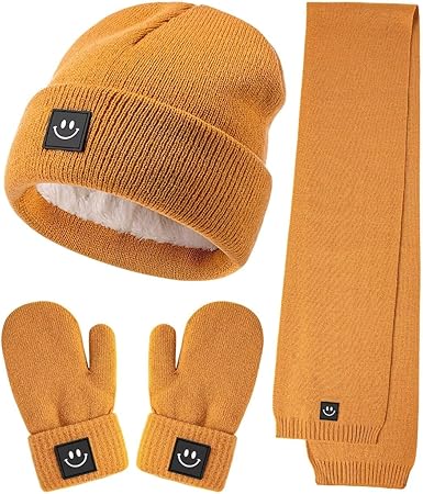 Baby Beanie Mittens Scarf Set, Toddler Kids Winter Hat and Thermal Gloves Neck Warmer Set for Girls Boys