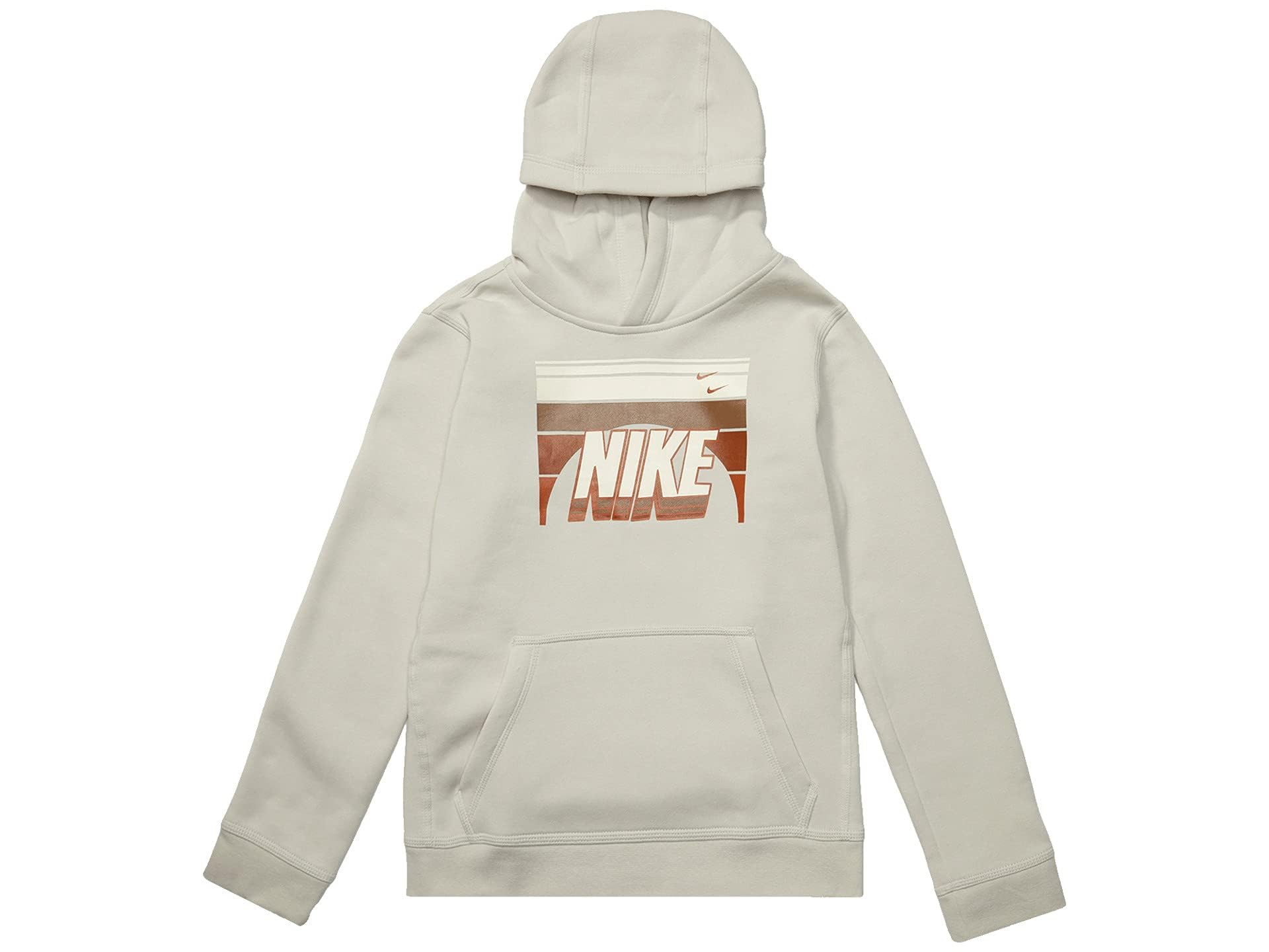 Details: CLASSIC COMFORT.Staying warm is super easy with the Nike Sportswear Club Hoodie. This classic pullover has a handy front pocket and sunrise-inspired graphic to complete this soft and cozy layer. Lightweight fleece feels supersoft and fuzzy inside for warmth and comfort. Ribbed cuffs and hem help keep your hoodie fit in place. Standard fit for a relaxed, easy feel Front pocket 80% cotton, 20% polyester Machine wash Measurements: Length: 21 in Chest Measurement: 16 in Sleeve Length: 23 inProduct measurements were taken using size MD (10-12 Big Kids). Please note that measurements may vary by size.