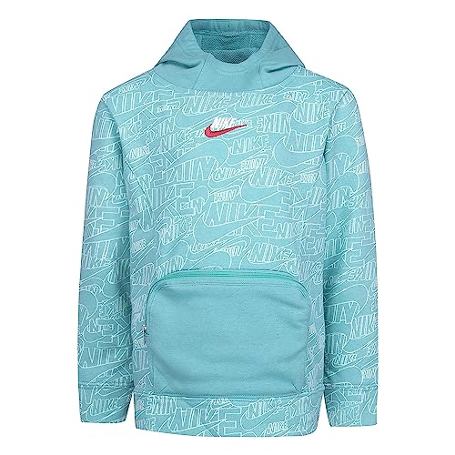 Details: Sportswear Logo Pullover Hoodie (Toddler/Little Kids/Big Kids). Pullover style. Hood attached at neckline. Long set-in sleeves with rib knit openings. Logo printed on front. Branded patterning all over. Kangaroo pocket with zipper pocket on front. Straight rib knit hemline. 100% cotton. Machine wash. Imported.