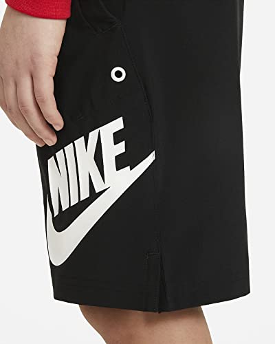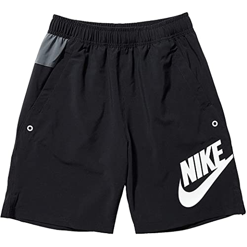 Details: Nike Boys Black Hybrid Woven Athletic Shorts/Swim Trunks/Jammers, Big Swoosh, Unique Hybrid Shorts for Sport & Swim, Lightweight Quick Dry, Style DA0855/Color 010, Size Large (Older Boys Size 14-16). Unique hybrid shorts that double as a swim short and an athletic short. Quick drying lightweight fabric is specially designed to go from land to water sports. White grommet design feature allows water to drain & dry rapidly. Go-with-everything black shorts with big Nike swoosh logo in white. Elastic waistband stretches for a snug fit. Polyester & spandex, machine washable.