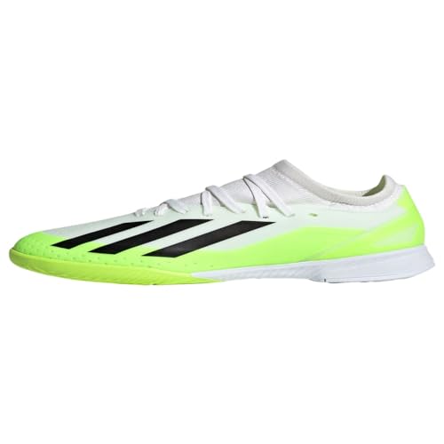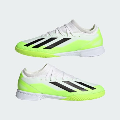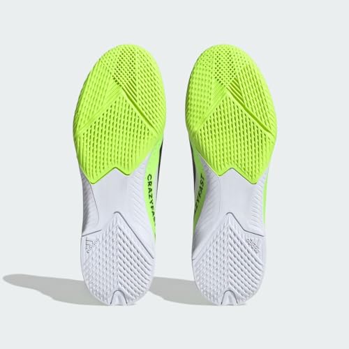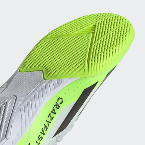 Details: The game's gone? Nah. It's just waiting for you to change it. Again. And again. Like to keep your rivals guessing? Go wild in adidas X Crazyfast. Keeping you stable at full tilt on flat surfaces, these soccer shoes for juniors sit on a grippy rubber indoor outsole. Featuring extra layers only where reinforcement is required, their lightweight coated textile upper comes with a flat-knit collar that ensures you stay locked in.