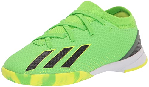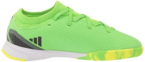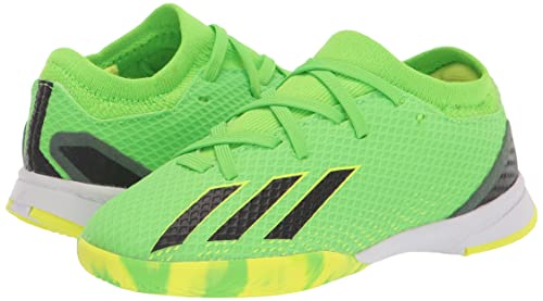 Details: Fly your colors on the world stage in these speed-boosting adidas soccer shoes for juniors. The textile upper has an external heel lock for stability at high speeds and a supportive flat-knit collar for lockdown. The grippy rubber outsole keeps you one step ahead on flat indoor surfaces.