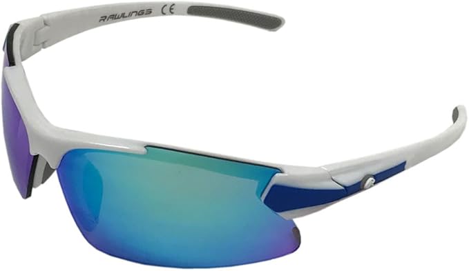 Rawlings Kids Sunglasses for Baseball and Youth Softball Sunglasses - 100% UV Lightweight Poly Lens with Stylish Shield Lenses - White/Blue