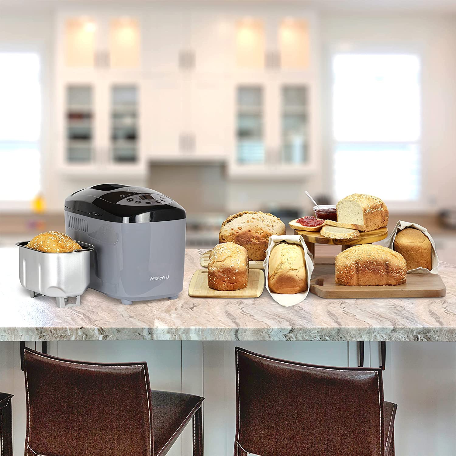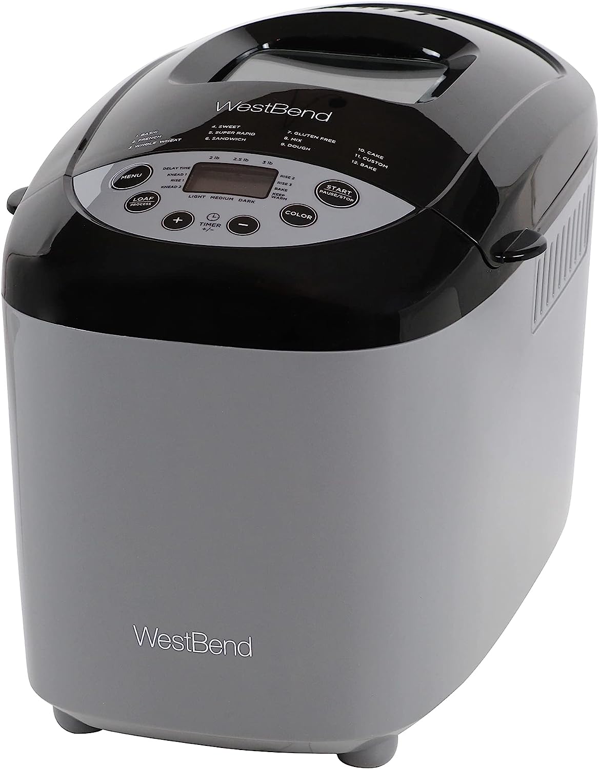 West Bend Hi-Rise Bread Maker Programmable Horizontal Dual Blade with 12 Programs Including Gluten Free, 3-Pound, Gray