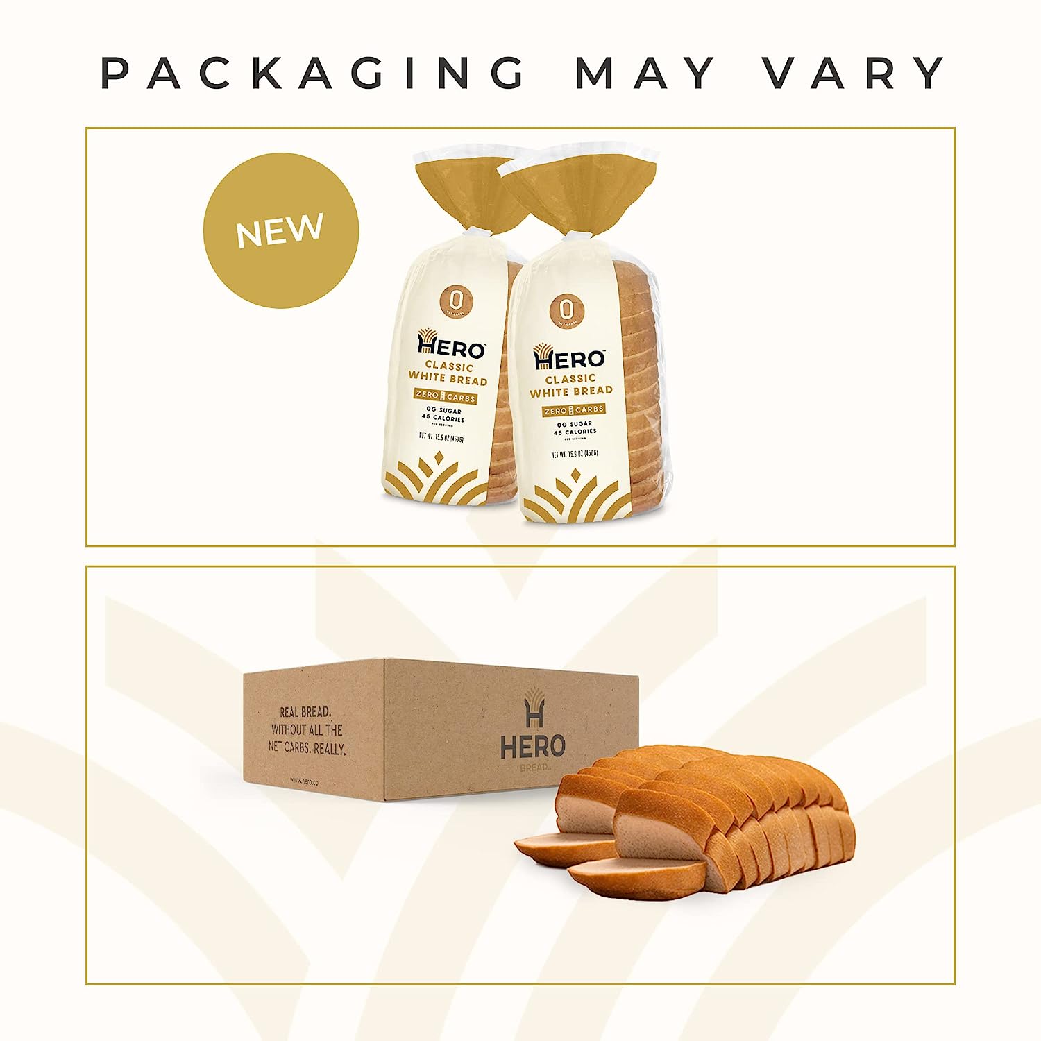 Hero Classic White Bread — Delicious Bread with 0g Net Carb, 0g Sugar, 45 Calories, 11g Fiber per Slice | Tastes Like Regular Bread | Low Carb & Keto Friendly Bread Loaf —15 Slices/Loaf, 4 Loaves