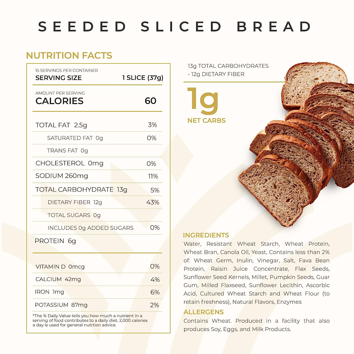 Hero Seeded Sandwich Bread — 1g Net Carbs, less than 100 Calories, High Fiber, 0g Sugar, & 6g Protein per serving | Tasty Wheat Bread | Net Low Carb & Keto-Friendly Bread — 15 Slices/Loaf, 2 Loaves