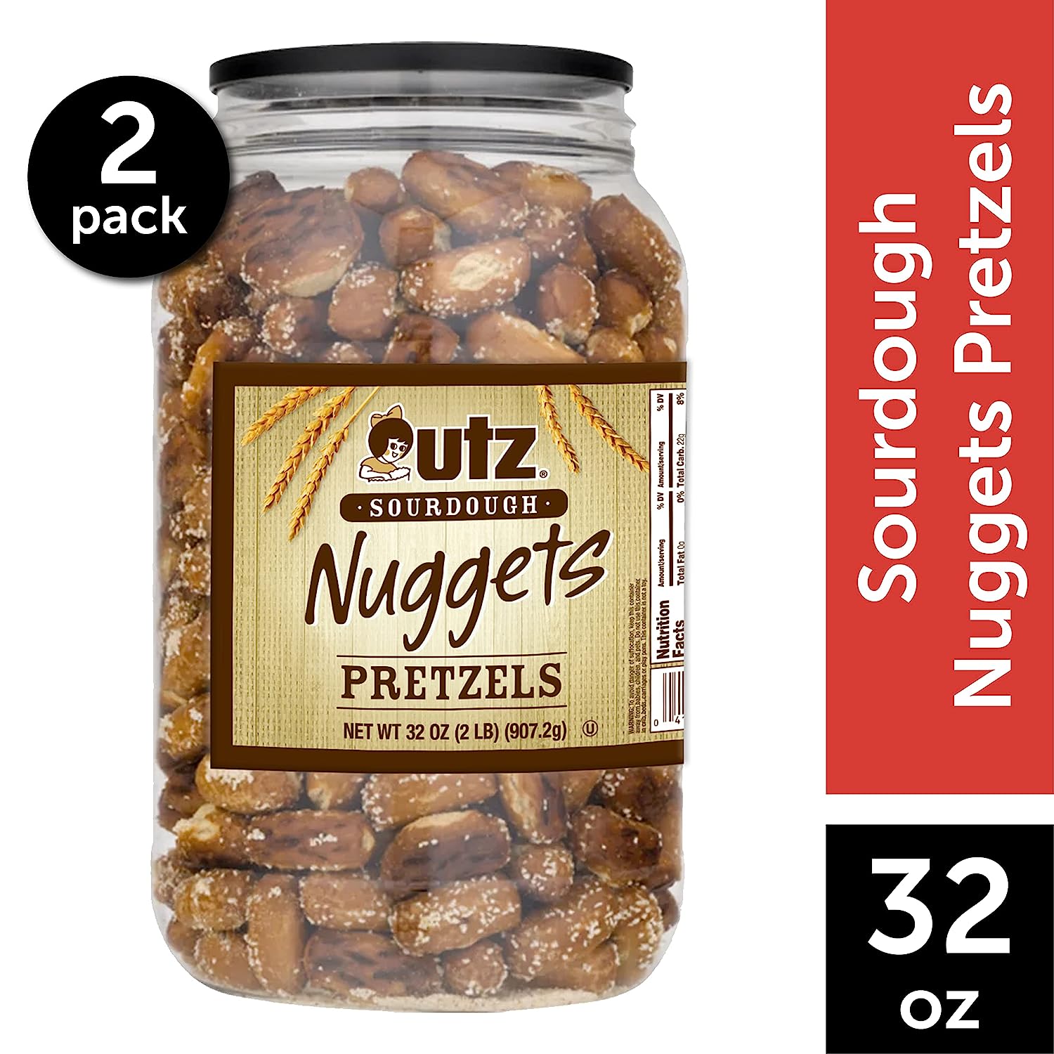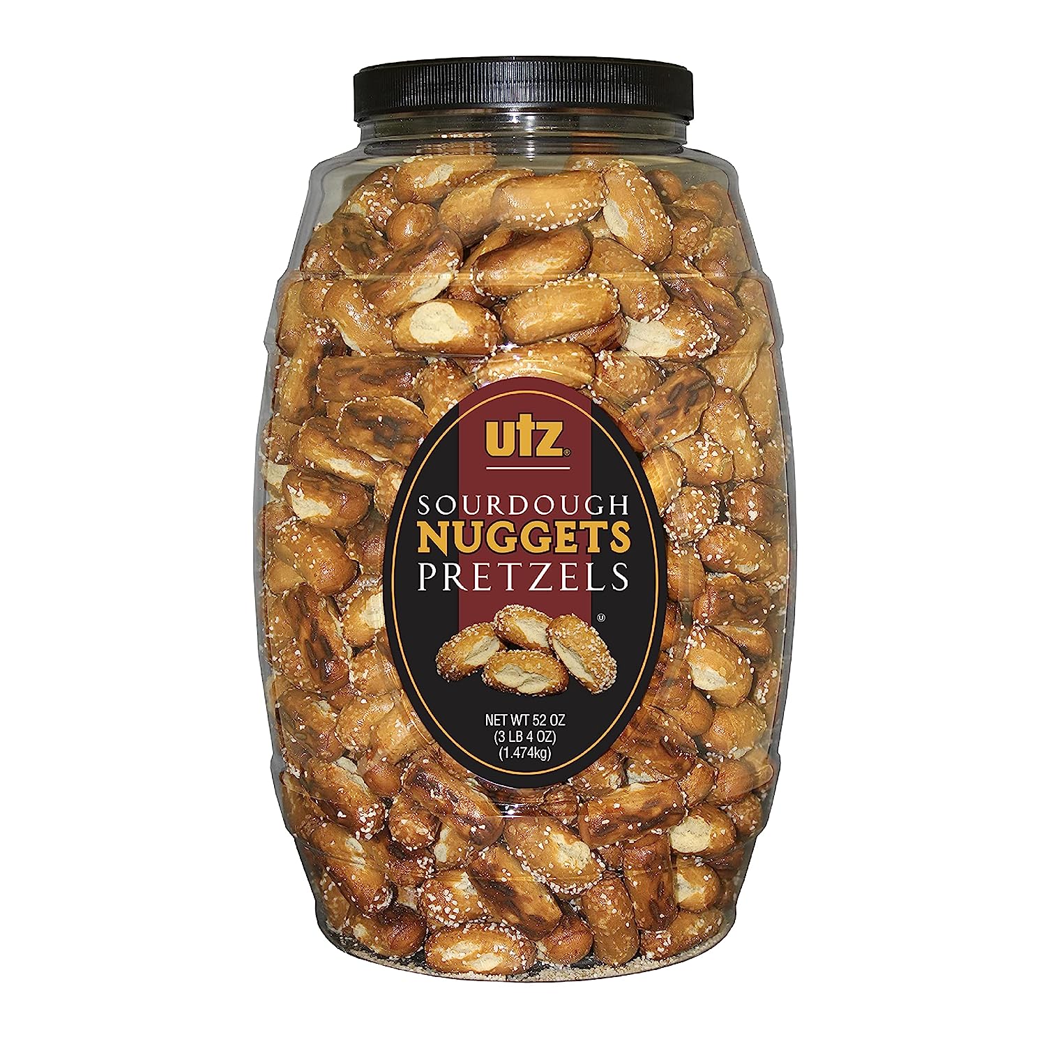 Don’t settle for any old sourdough pretzel nugget when you can grab a barrel of Utz Sourdough Nugget Pretzels and get all the bite-size mouth-popping, crunchy, salty goodness that you crave! Share them - or don’t - with this resealable barrel that keeps them fresh longer! Utz Sourdough Nuggets are a perfect snack all on their own, or pair with peanut butter or a cheese dip for a crowd-pleasing appetizer. Perfect for storing in the pantry for when the craving strikes or pack a few for lunch - the possibilities are endless, and that makes Utz Sourdough Nugget Pretzels your best snack yet! With zero cholesterol and trans-fat, Utz pretzels offer a lighter go-to snack to enjoy. With clean and simple ingredients, Utz uses a two-part baking process to ensure that you get the freshest, crispiest crunch you crave!