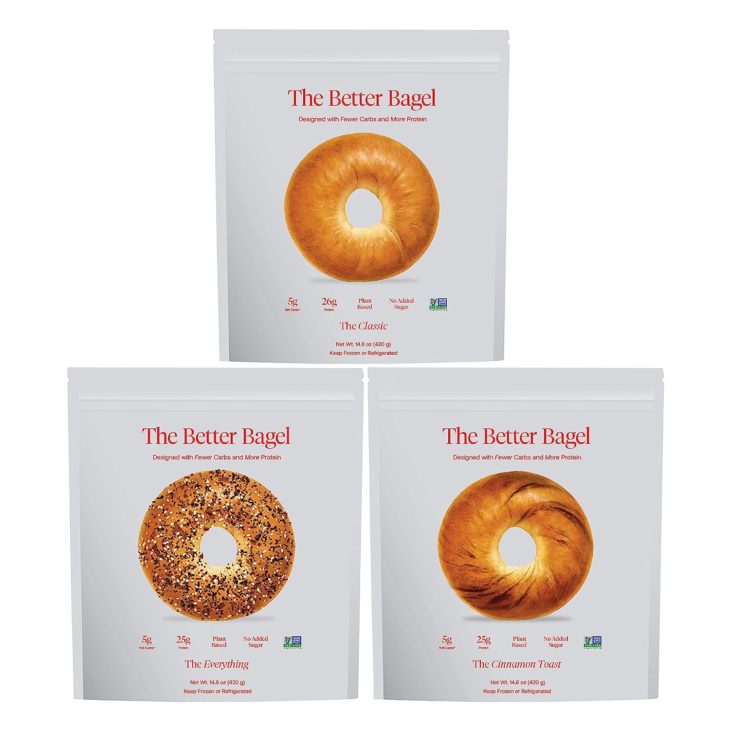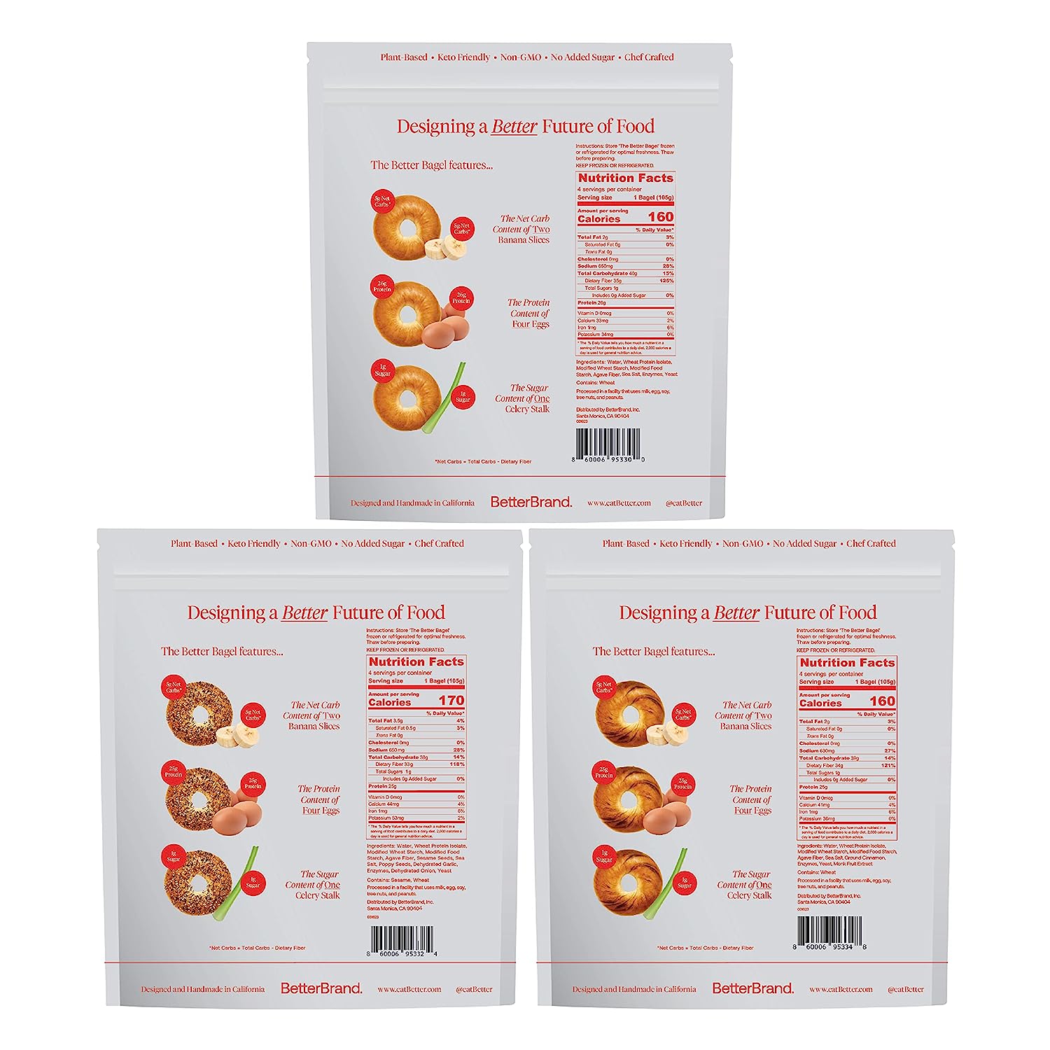 BetterBrand The Better Bagel Variety Pack, Low Carb (5 Net G Carb),High Protein (25+ g protein), No Sugar Added, Keto Friendly, Plant Based, Non GMO, 4 Count (Pack of 3)