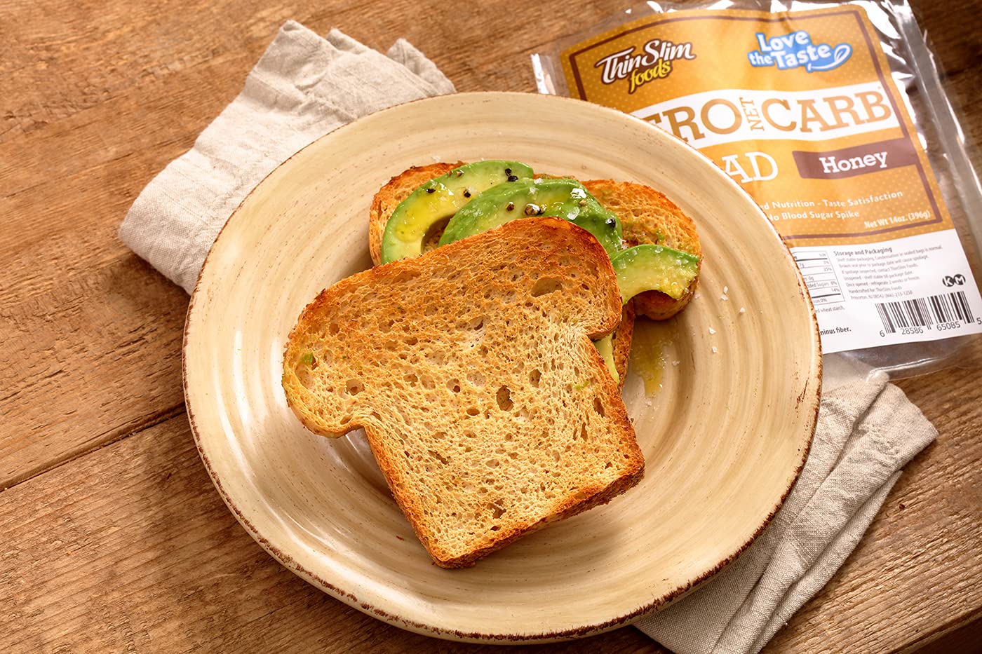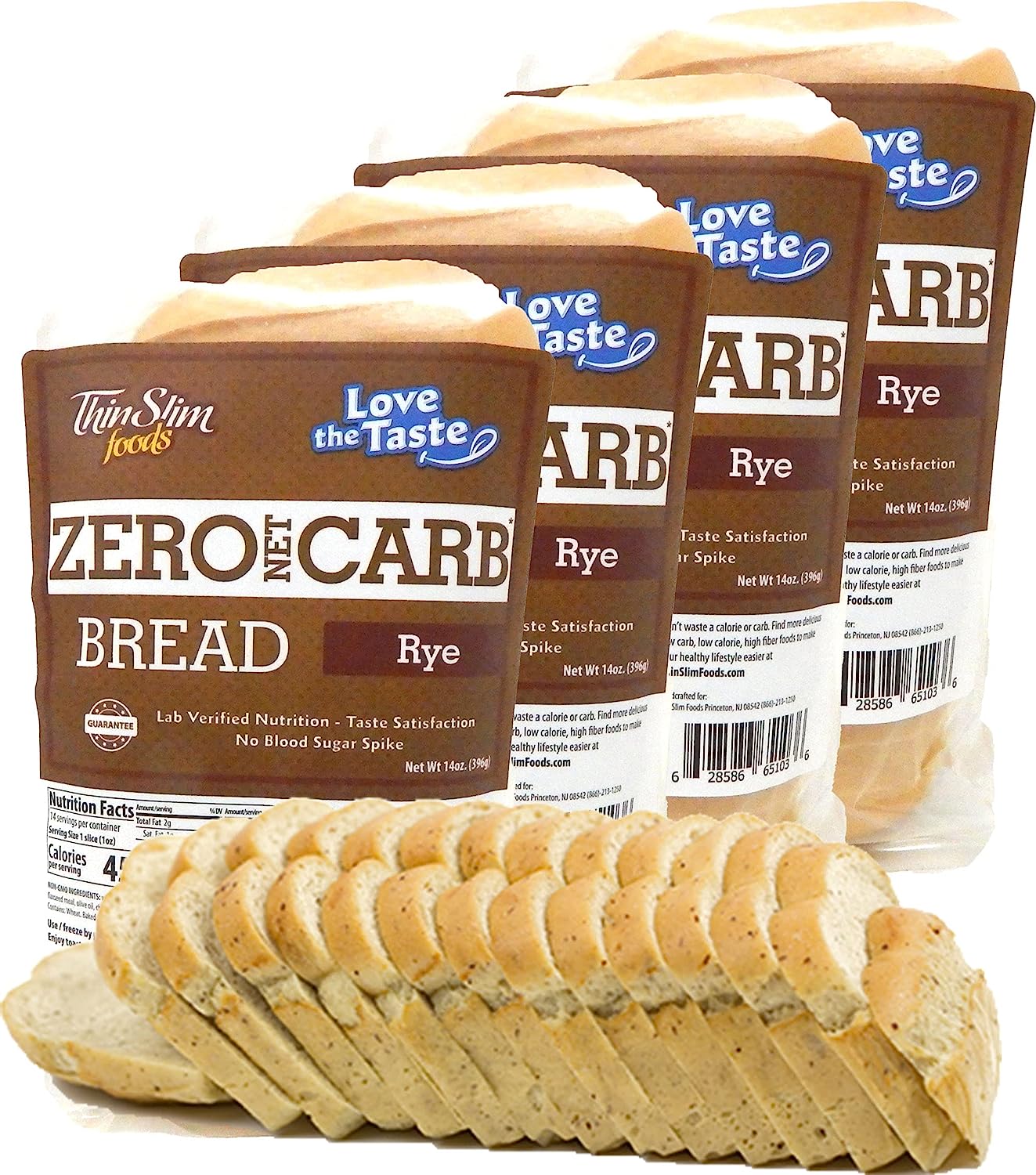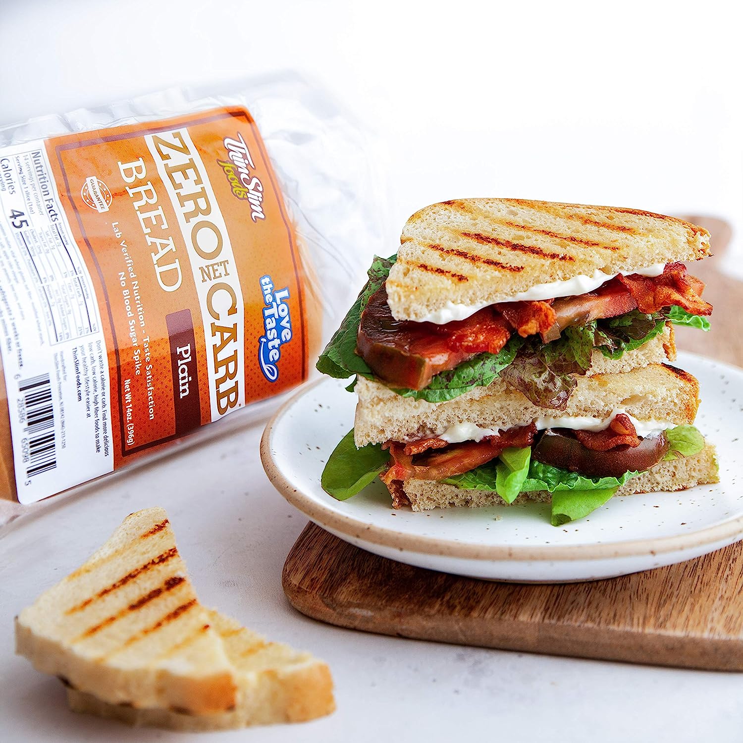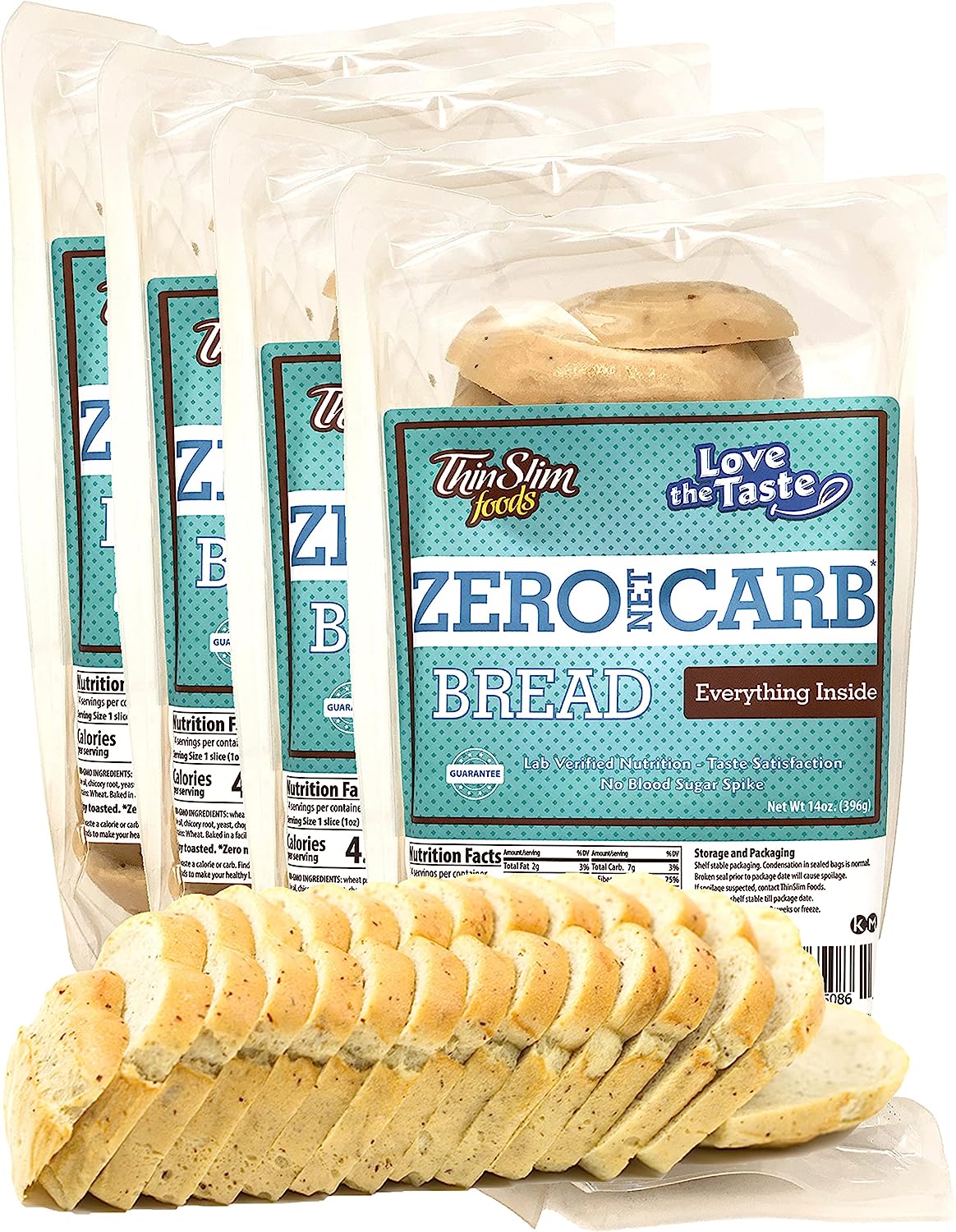 ThinSlim Foods Zero Net Carb Keto Bread is Low Carb Bread handcrafted with a revolutionary dough that has delighted the low carb consumer for over 10 years. This shelf-stable, keto-friendly bread is created with the highest quality ingredients, with zero net carbs and 45 calories per slice. This is a 2-pack of plain bread, with 14 slices per package. The ingredients used in our low-calorie loaf digest more slowly than normal bread, which means you stay satiated longer and your body doesn't turn the excess sugar into fat. This plain sliced bread is the ideal option for diabetics and dieters, including those on low carb plans or who are following Atkins, Keto, Paleo, Mediterranean, Whole30, Dukan, or South Beach diets. With 7g total carbohydrates and 7g of fiber in every slice, ThinSlim Foods zero net carb bread is proven to not cause a blood sugar spike. Our delicious, low GI sandwich bread has no soy or soybean oil, no almond flour, and our nutritional facts are independently lab-tested for accuracy. Our taste assurance: We're so confident that you'll love our products, that if you don't, let us know and we'll refund up to 1 of each flavor/type of product. Ingredients: wheat protein isolate, vital wheat gluten, oat fiber, modified wheat starch, olive oil, chicory root, yeast, salt, enzyme. Allergens: Contains wheat. Baked in a facility that uses wheat, soy, peanuts, tree nuts, eggs, and dairy. Storage: Unopened - Shelf stable till package date. Opened - Refrigerate 2 weeks or freeze.
