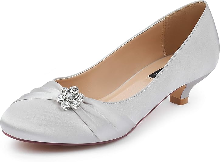 ERIJUNOR Women Closed Toe Comfort Kitten Heels Rhinestones Satin Wedding Evening Dress Shoes