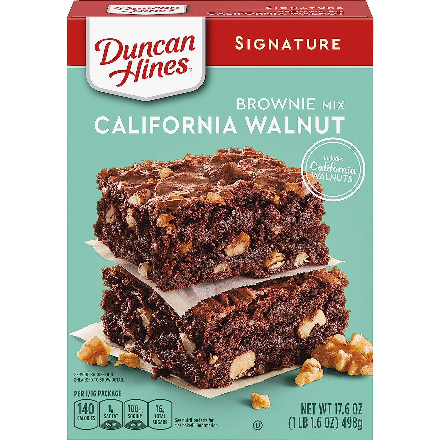 Whip up a chocolate dessert in no time with Duncan Hines Signature California Walnut Brownie Mix. California walnuts add a crunchy contrast to the chocolate flavor in this chocolate brownie mix. Satisfy your sweet tooth with walnut brownies any day, or whip up a batch for a party. Add oil, eggs and water to enjoy brownies with nuts easily. Bake the brownies up to 38 minutes depending on your pan size. This 17.6 ounce box of brownies makes enough for an 8 by 8 or 9 by 9 inch pan. From brownie mix to single serve desserts, Duncan Hines has you covered when you’re ready to bake and create.