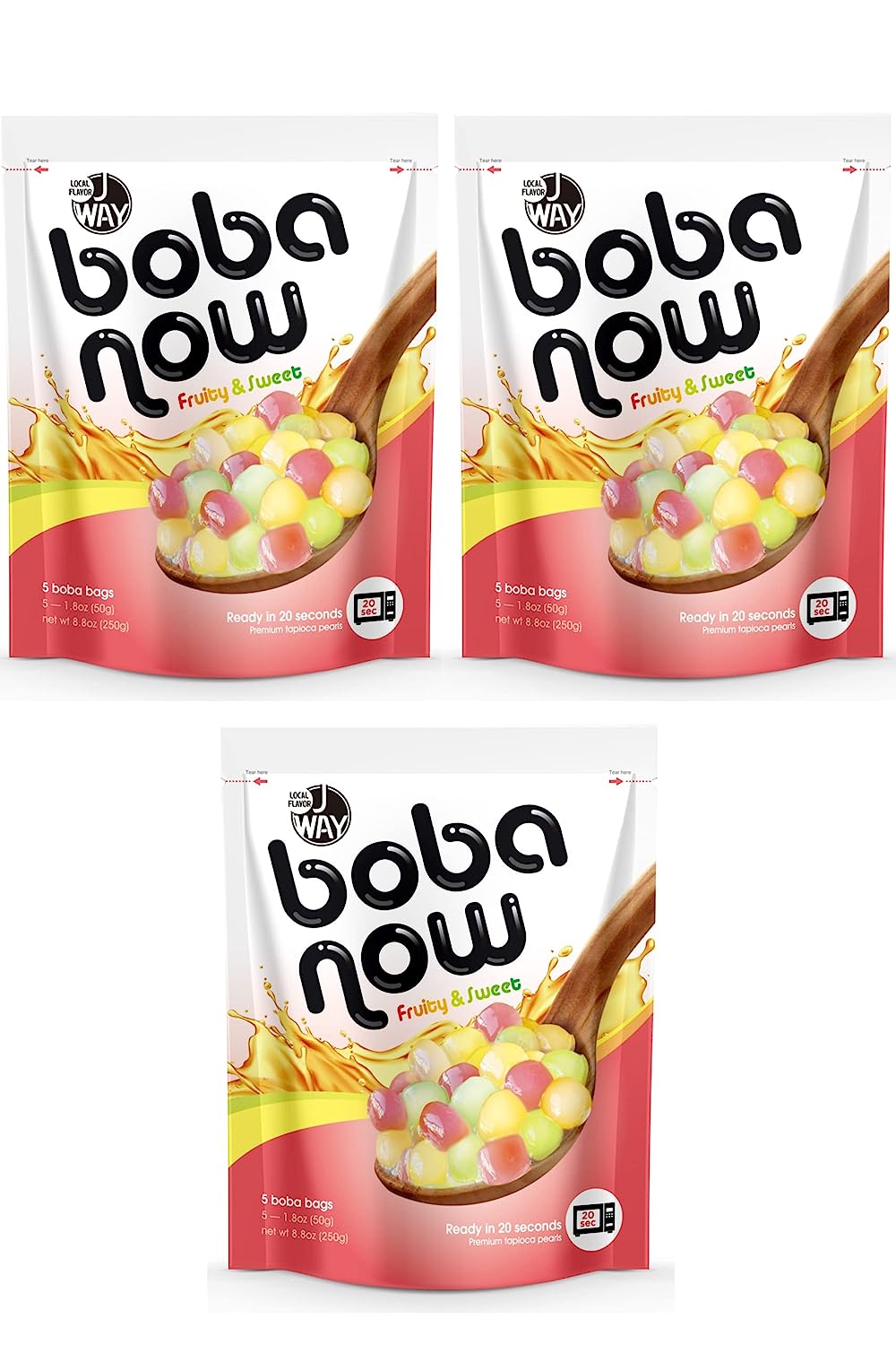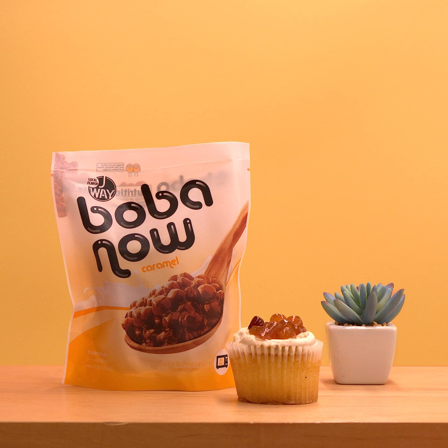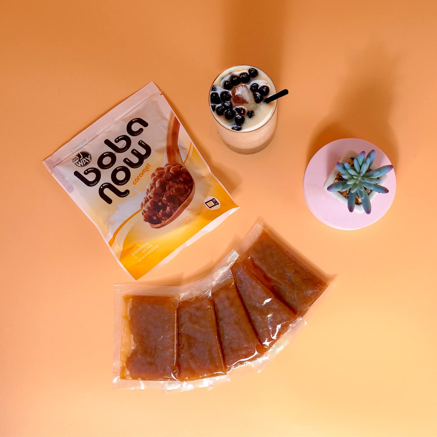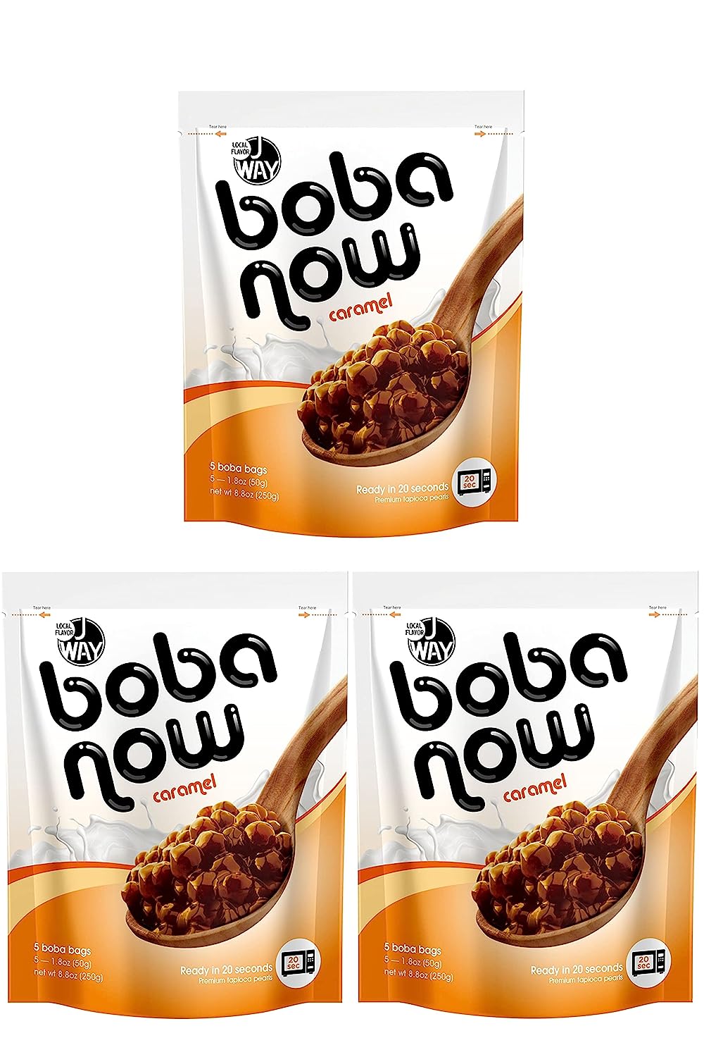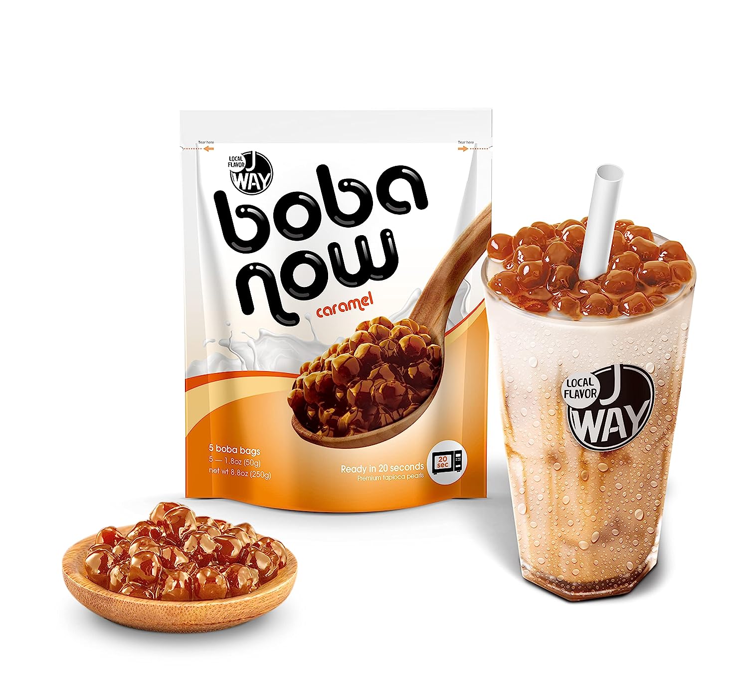 J WAY BOBA NOW Authentic Instant Tapioca Boba Pearls for Milk Tea, Smoothies and Desserts, Caramel Flavor ( Ready in Just 20 Seconds ) - 5 Servings