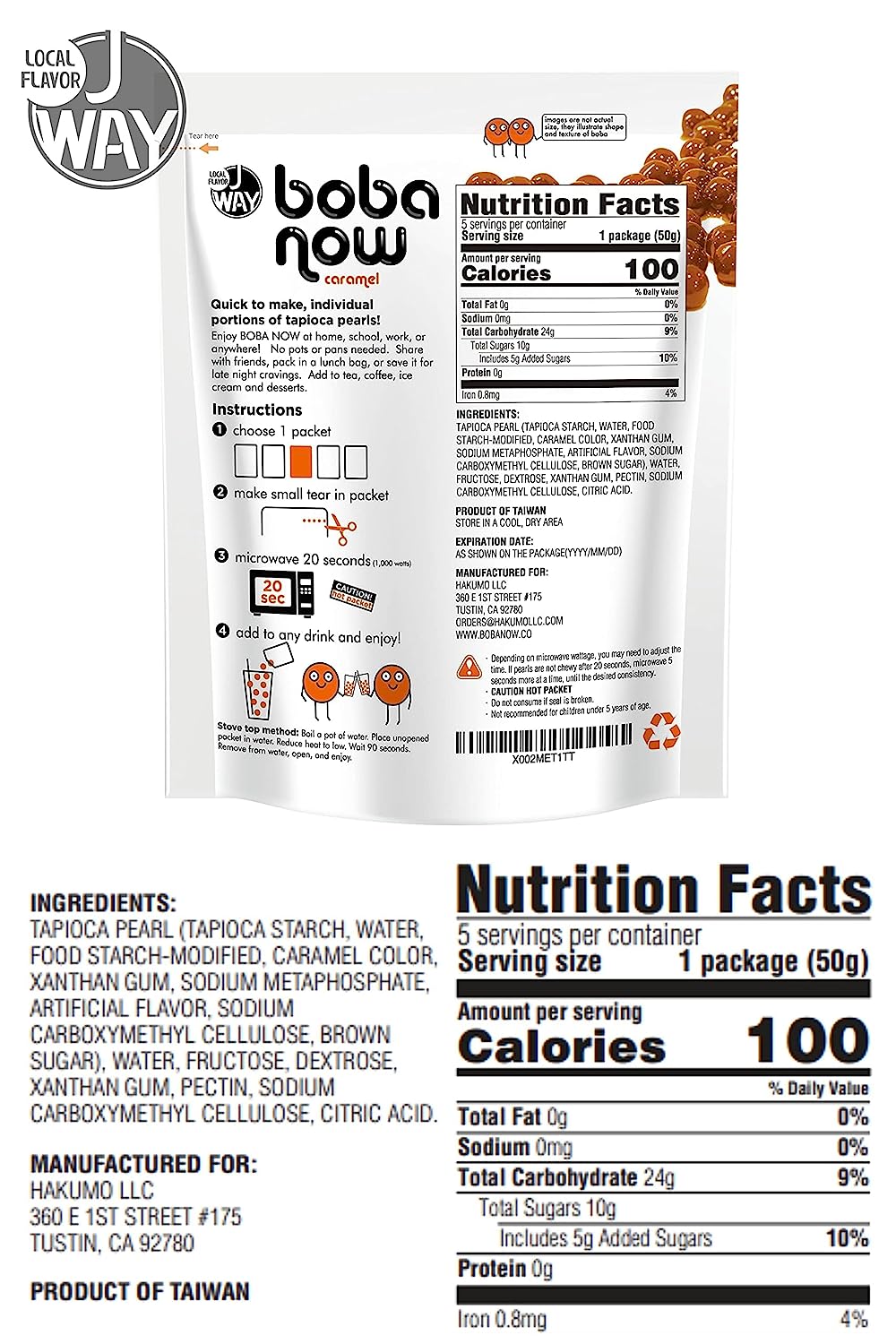 • 🥤BOBA NOW-WHAT IS INSIDE- 5 Individually wrapped portions of caramel flavored boba. Store in a cool, dry place (no refrigeration necessary).