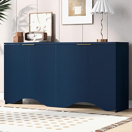 Amposei Modern Accent Sideboard Cabinet 63-Inch Credenza Console Storage Cabinet with Adjustable Shelves for Living Room Entrance Hallway, Navy Blue