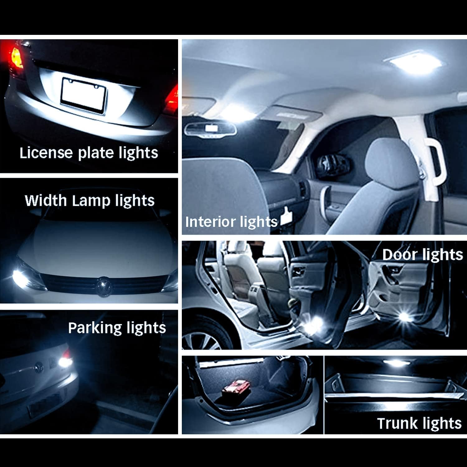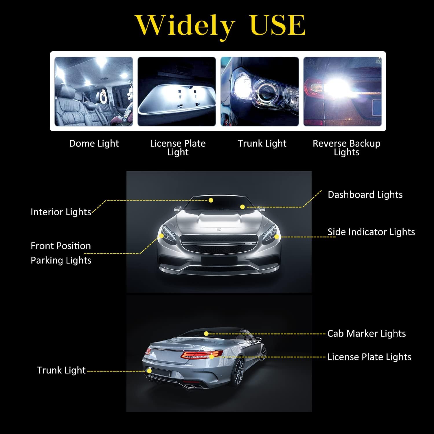 -RV camper trailer boat interior lights, backup or reverse lights, center high mount stop lights, license plate tag light, map lights, dome light, front/rear side marker lights, trunk lights, reading lights, glove box lights, inner tail light bulb etc.