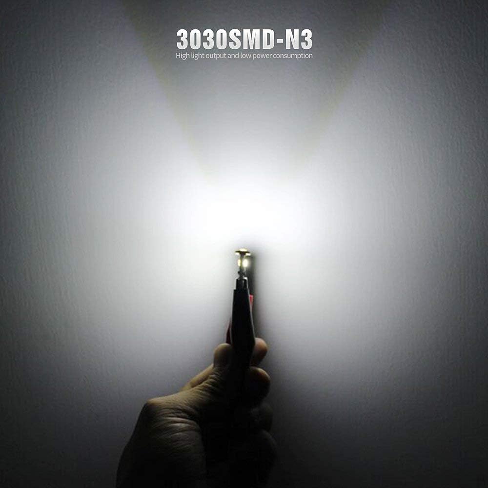 • Each bulb built with three 3030 high power SMD. Give your car pure white super bright light output.