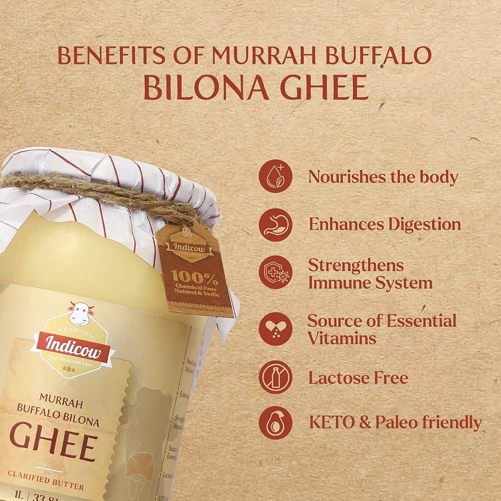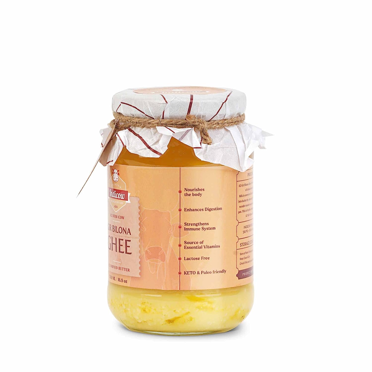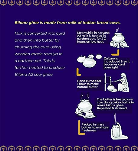 MADE FROM CURD: Our A2 Desi Sahiwal Cow Ghee is 100% pure, preservative-free, chemical-free, and cruelty-free. Fresh A2 milk obtained from Desi Sahiwal cows is boiled and set to curd, the curd is then slowly hand churned bi-directionally in a wooden churner. The A2 butter obtained through this process is then separated and slowly heated to obtain Indicow A2 Desi Sahiwal Cow Ghee. This is why our A2 cow ghee has a grainy texture, thicker consistency, tempting aroma, and great flavour.
