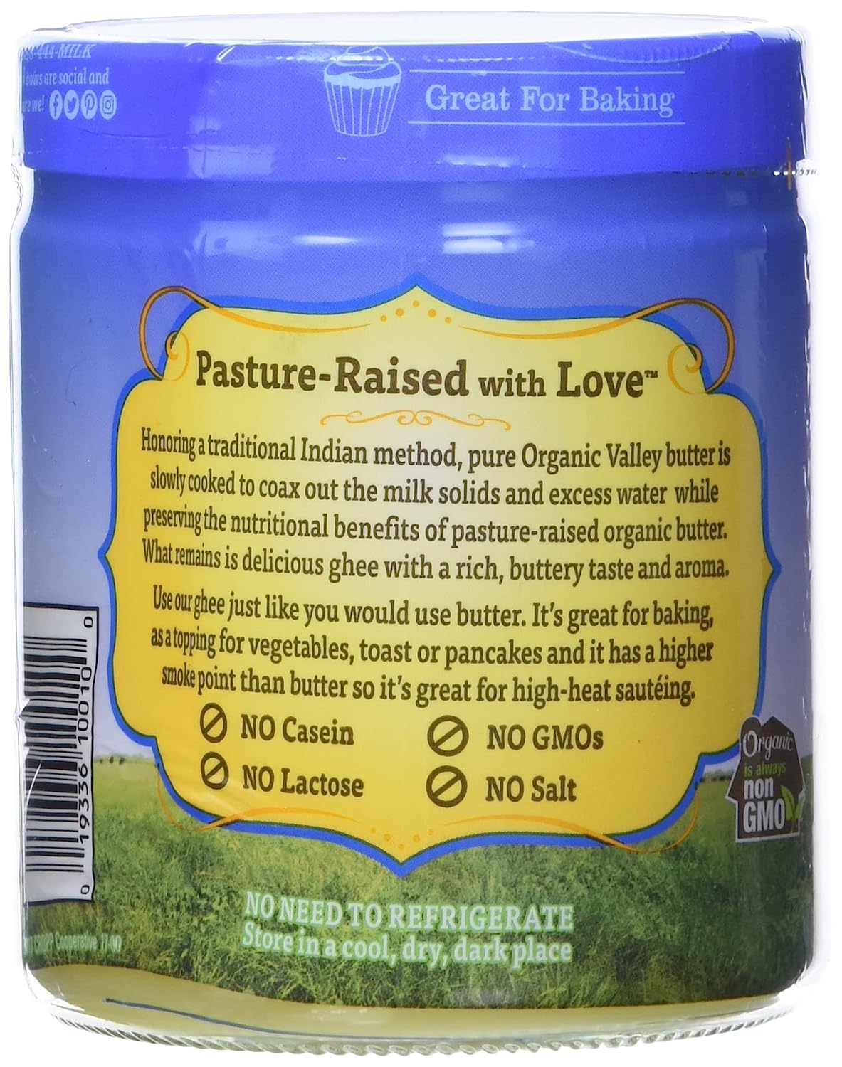 Organic Valley Organic Ghee Clarified Butter is versatile, with a rich, nutty flavor. This organic clarified butter is lactose free and casein free. With a high smoke point, ghee is a great cooking butter over high heat, including sautéing, frying, roasting and baking. Substitute ghee for oil or organic butter in your favorite recipes, spread it on bread, drizzle it over popcorn, or try adding it to your morning coffee. We slowly simmer our ghee butter to coax the excess water out while preserving the nutritional benefits of pasture raised butter. In the process, some of the ghee’s milk solids caramelize, leaving behind hints of sweetness and roasted nuts. Organic Valley ghee comes in a resealable, shelf stable container for easy storage.