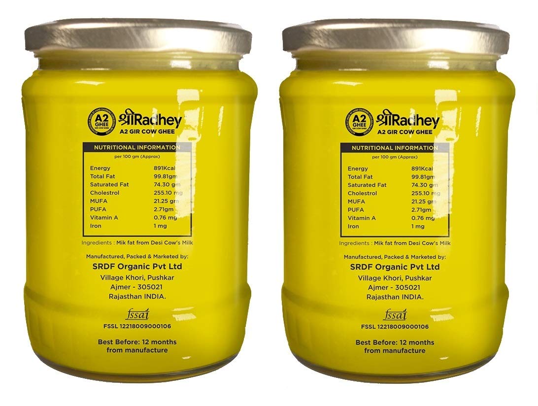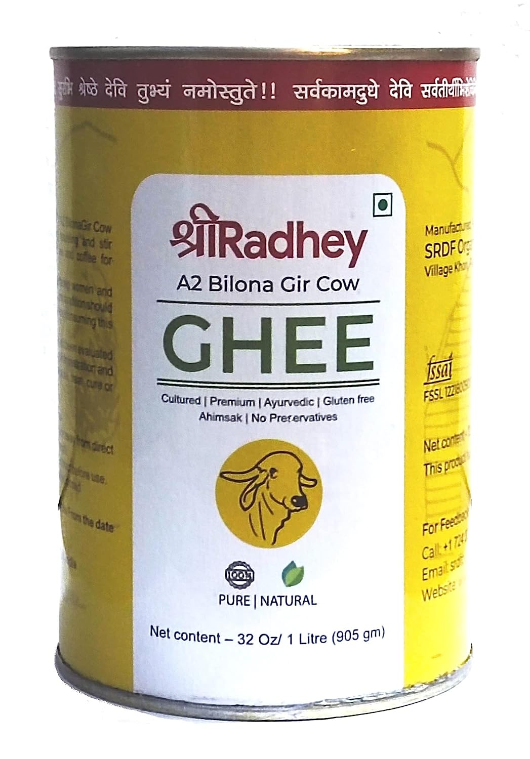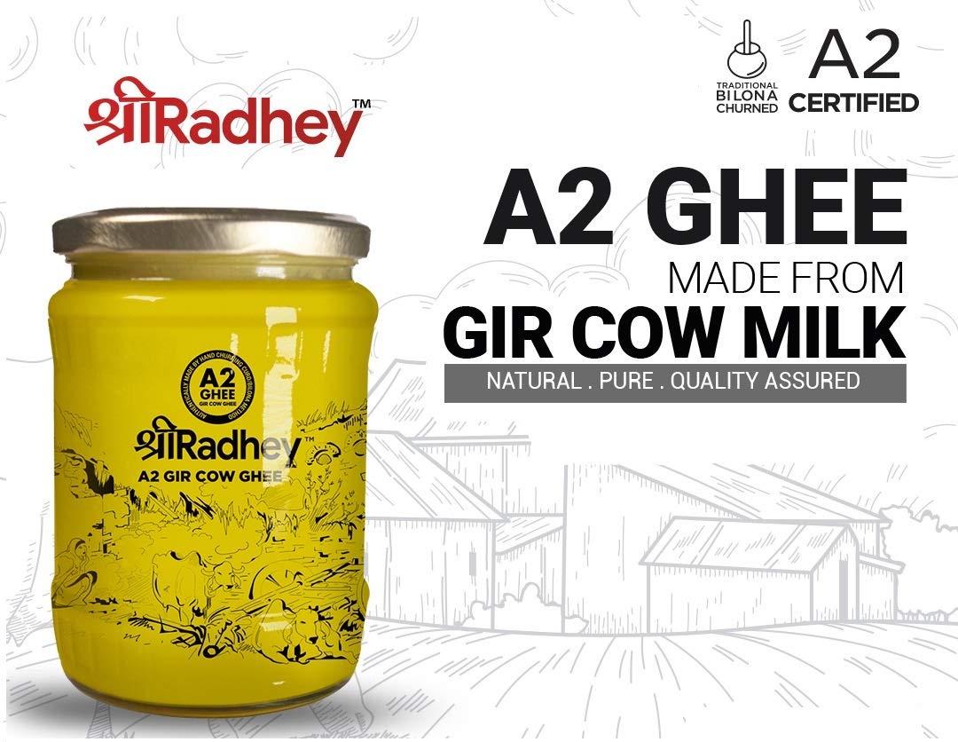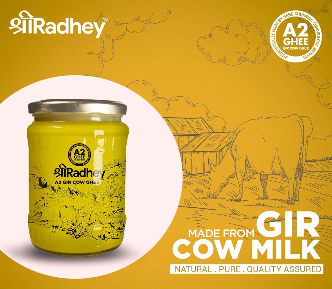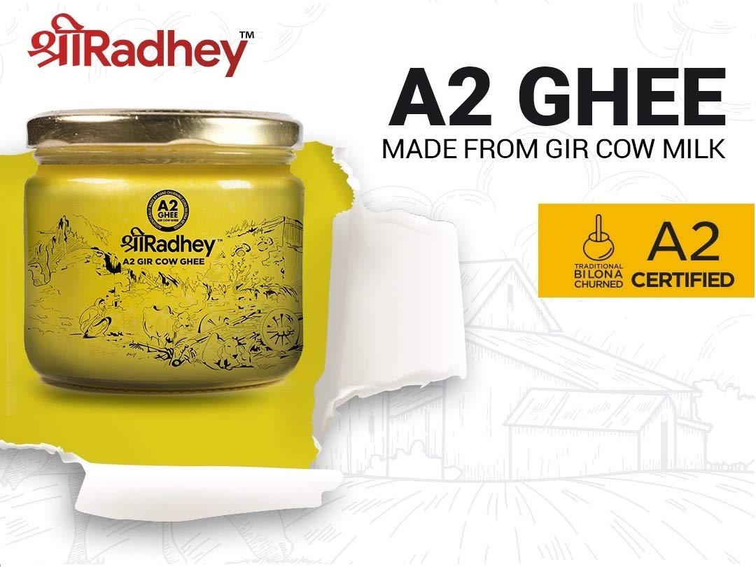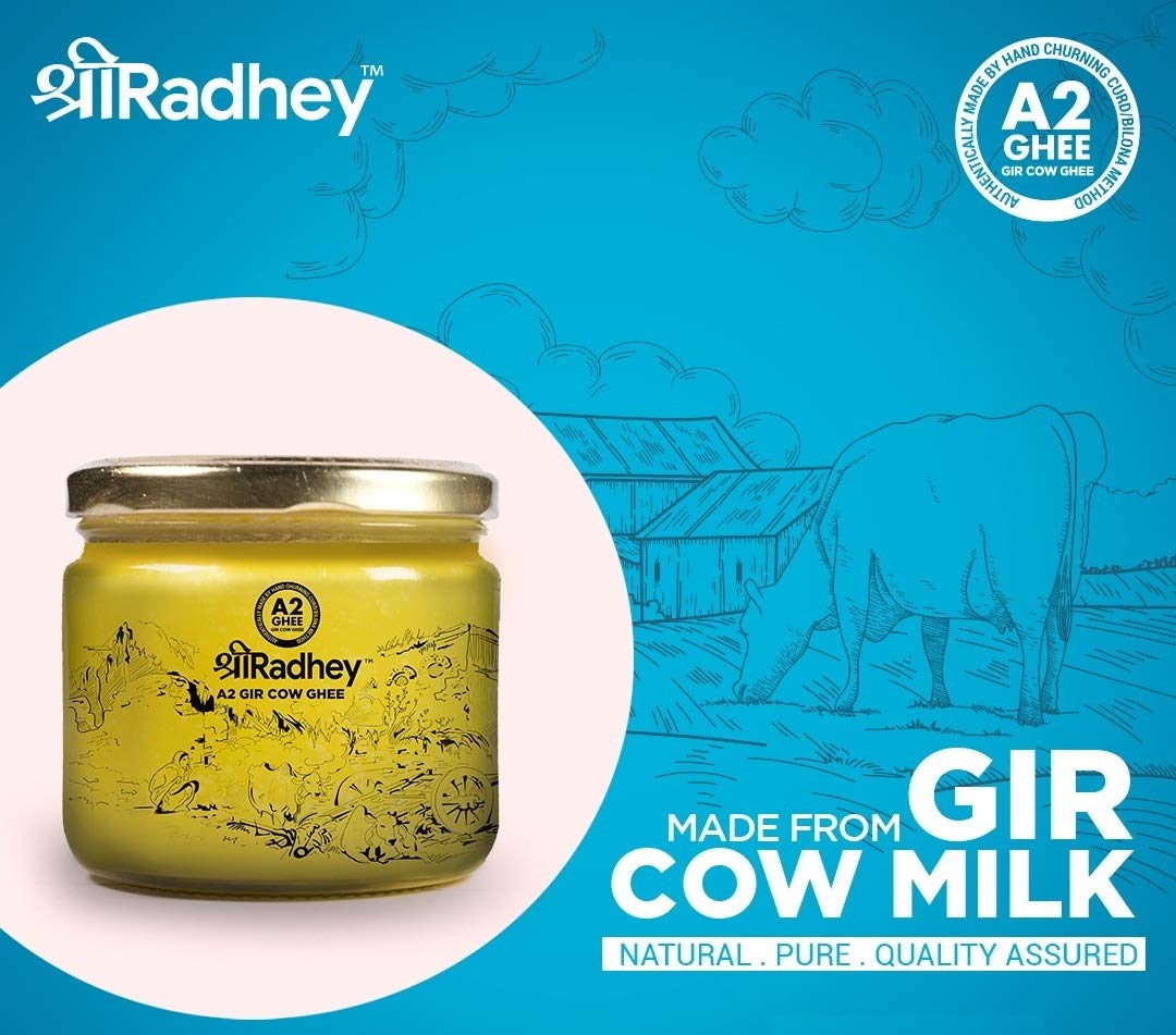 Since 2015 SHREE RADHEY A2 Bilona Gir Cow Ghee is one of the most trusted product because of it's taste attributes. Best source of nutrition for you and your family as it tastes, what real ghee should taste like. Tip: ghee must always be consumed with dishes like like daal, kadhi, milk . Cooking food in ghee makes it tastier as well as healthy , our process is completely based on ancient Indian traditions. We use hand-churned techniques to get the purest and finest ghee; in our procedure we use 30 litres a2 milk into curd, which is coalesced and hand-churned to finally produce 1 litre of ghee. Step 1 : in a clay pot unprocessed, fresh and raw milk is boiled and converted into curd step 2 : hand-churned process is used with a wooden churner, also known as "bilona" in Indian language step 3 : we obtain the butter in this process then separate it. Step 4 : separated butter (makkhan) is then boiled in an iron vessel on SIM fire.