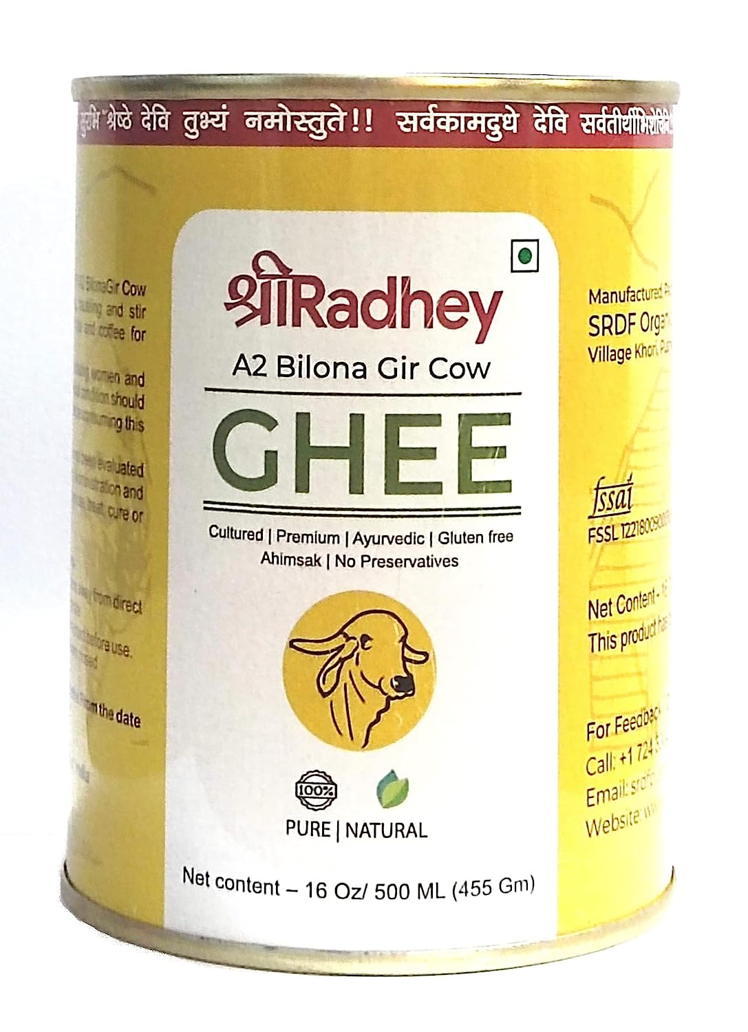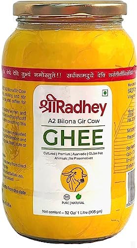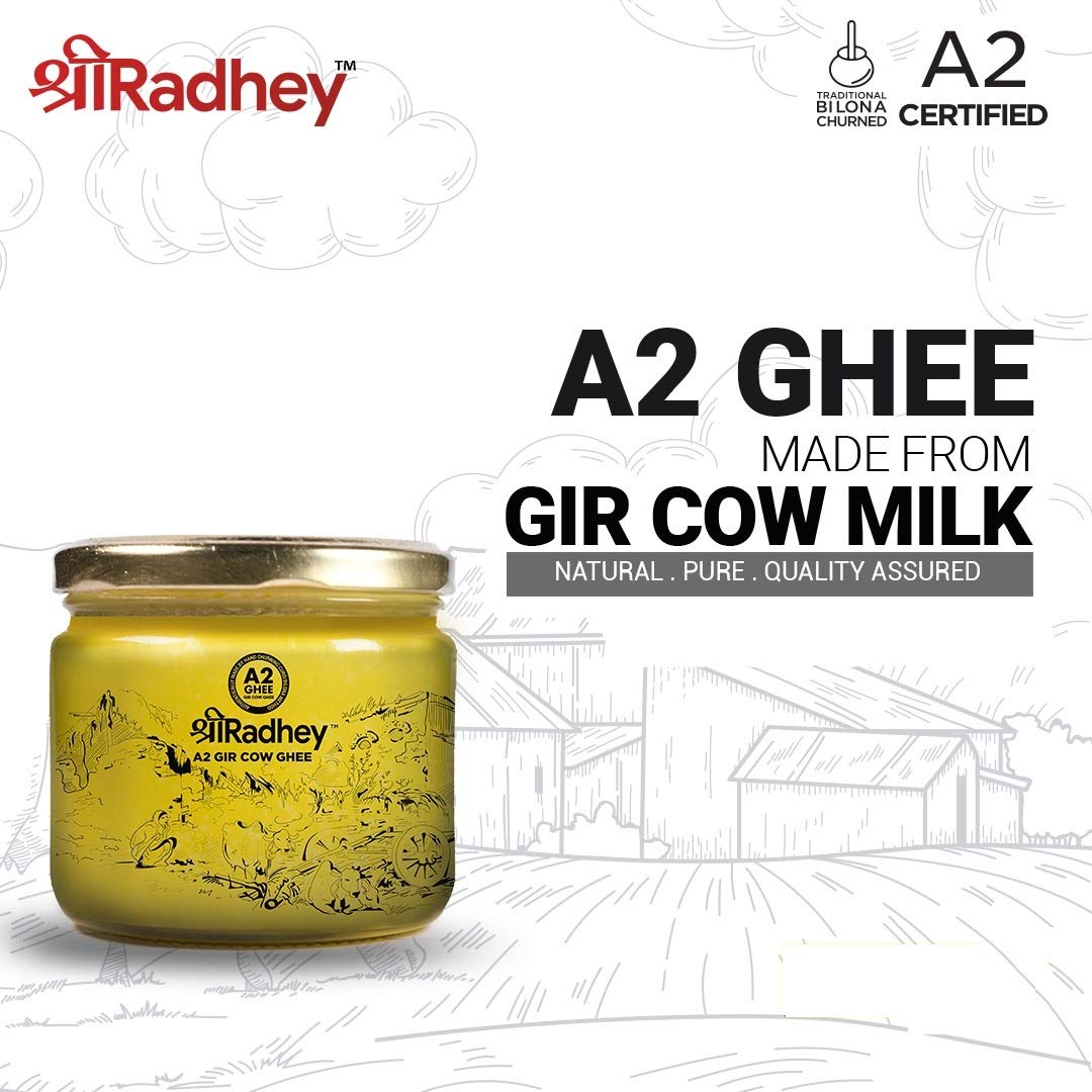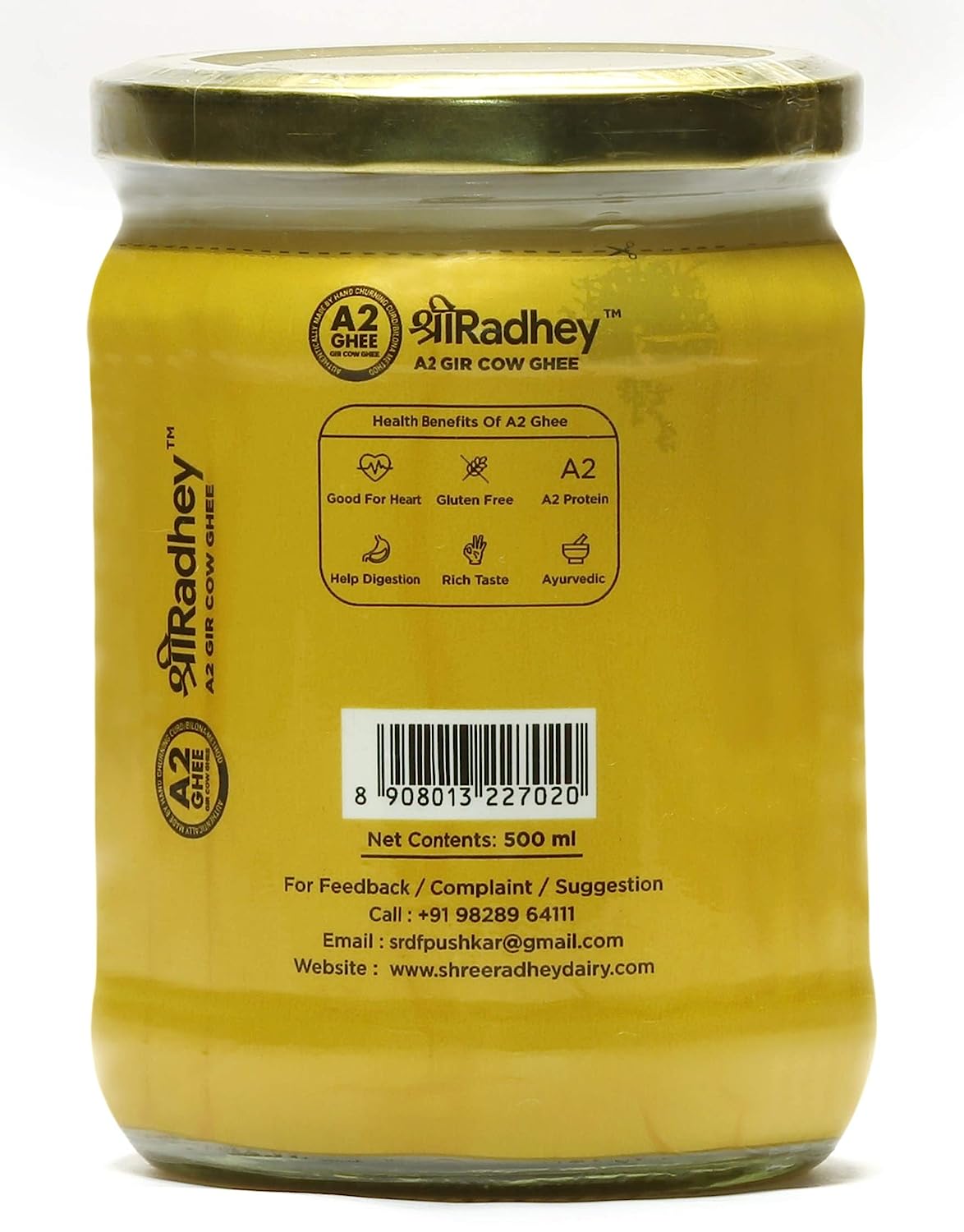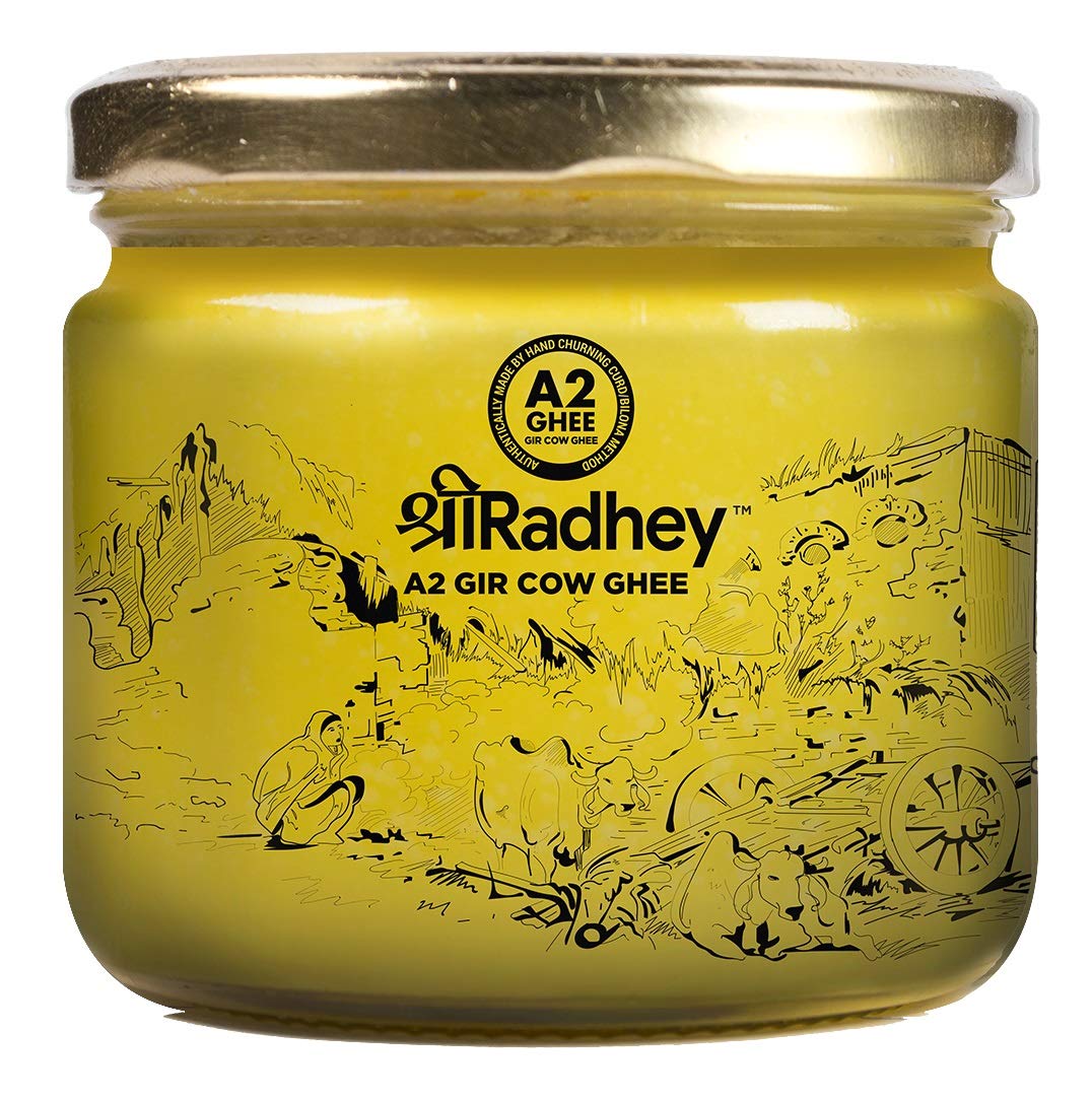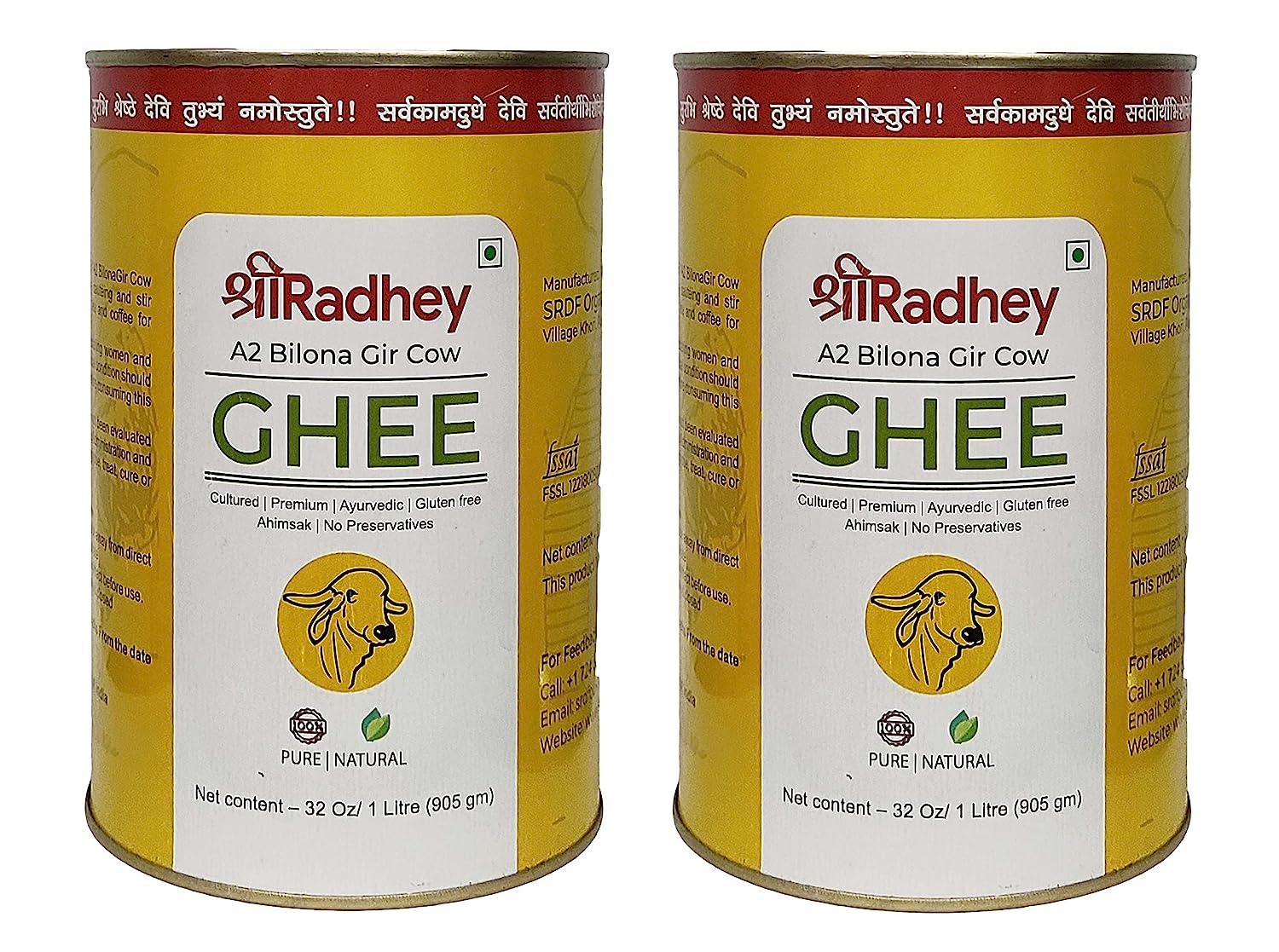 Since 2015 SHREE RADHEY A2 Bilona Gir Cow Ghee is one of the most trusted product because of it's taste attributes. Best source of nutrition for you and your family as it tastes, what real ghee should taste like. Tip: ghee must always be consumed with dishes like like daal, kadhi, milk . Cooking food in ghee makes it tastier as well as healthy , our process is completely based on ancient Indian traditions. We use hand-churned techniques to get the purest and finest ghee; in our procedure we use 30 litres a2 milk into curd, which is coalesced and hand-churned to finally produce 1 litre of ghee. Step 1 : in a clay pot unprocessed, fresh and raw milk is boiled and converted into curd step 2 : hand-churned process is used with a wooden churner, also known as "bilona" in Indian language step 3 : we obtain the butter in this process then separate it. Step 4 : separated butter (makkhan) is then boiled in an iron vessel on SIM fire.