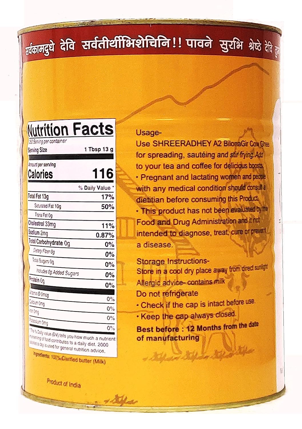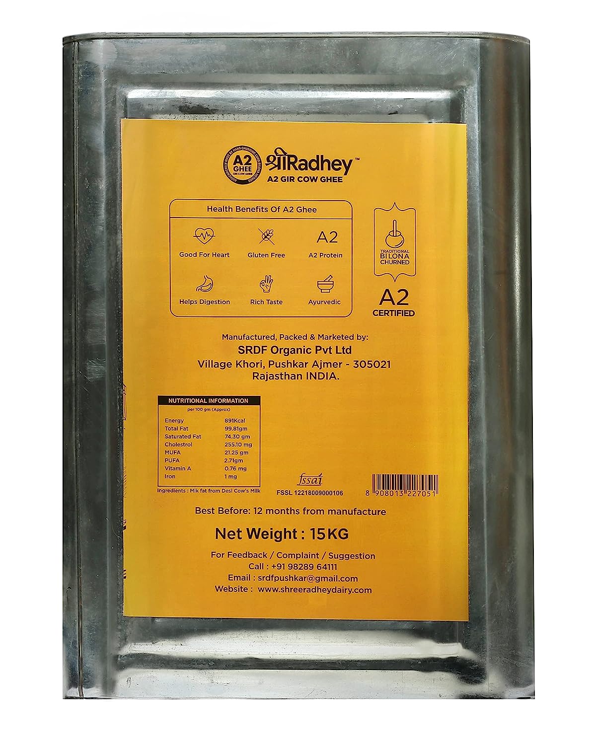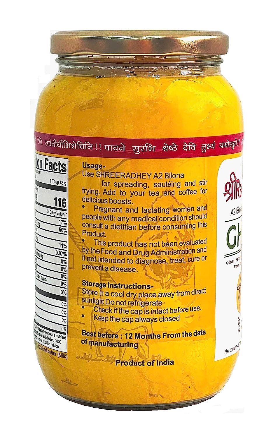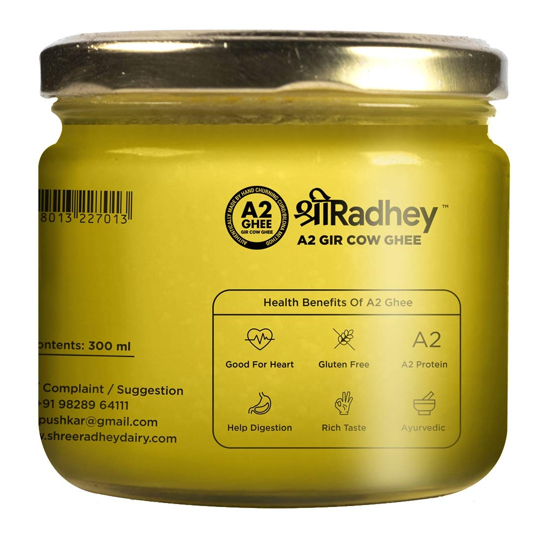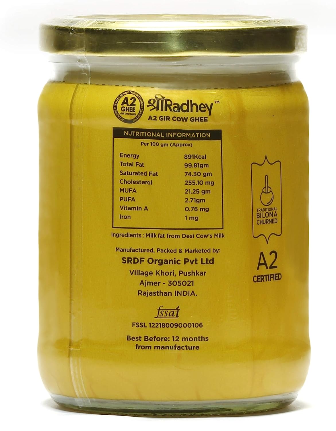 Since 2015 SHREE RADHEY A2 Bilona Gir Cow Ghee is one of the most trusted product because of it's taste attributes. Best source of nutrition for you and your family as it tastes, what real ghee should taste like. Tip: ghee must always be consumed with dishes like like daal, kadhi, milk . Cooking food in ghee makes it tastier as well as healthy , our process is completely based on ancient Indian traditions. We use hand-churned techniques to get the purest and finest ghee; in our procedure we use 30 litres a2 milk into curd, which is coalesced and hand-churned to finally produce 1 litre of ghee. Step 1 : in a clay pot unprocessed, fresh and raw milk is boiled and converted into curd step 2 : hand-churned process is used with a wooden churner, also known as "bilona" in Indian language step 3 : we obtain the butter in this process then separate it. Step 4 : separated butter (makkhan) is then boiled in an iron vessel on SIM fire.
