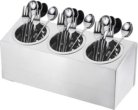 uxcell Kitchen Utensil Holder, Stainless Steel Cylinder Flatware Silverware Utensil Holder with 3 Compartments, Caddy Drying Rack Countertop Silverware Organizer for Buffets (3 Holes)