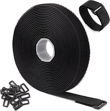 16Ft x 1In Adjustable Cable Straps with 25 Buckles, Free Cut Length, Black Reusable Fastening Cable Ties, Hook and Loop Securing Strap for Cable Tidy, Wire Management, Cord Organiser, Black