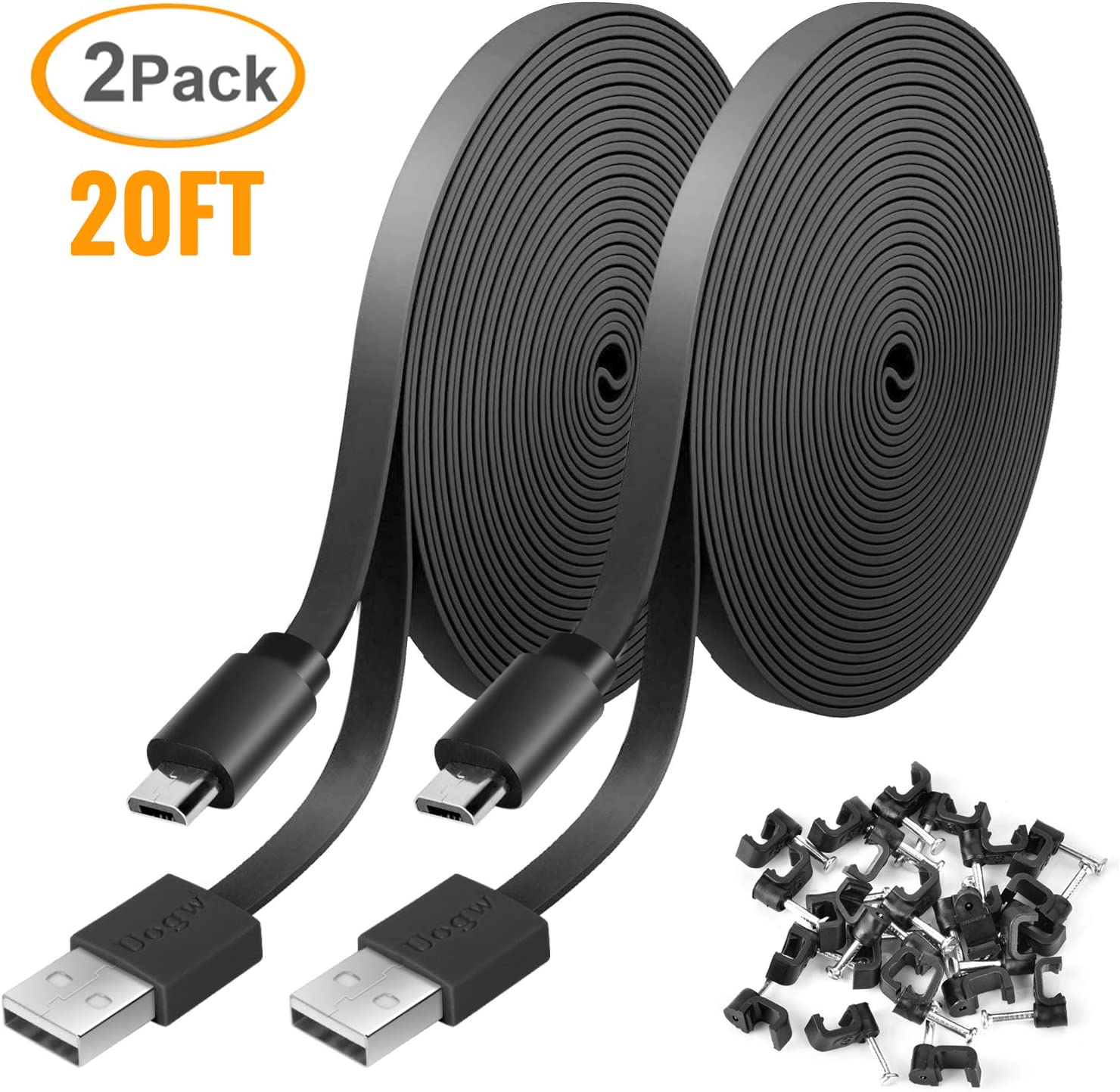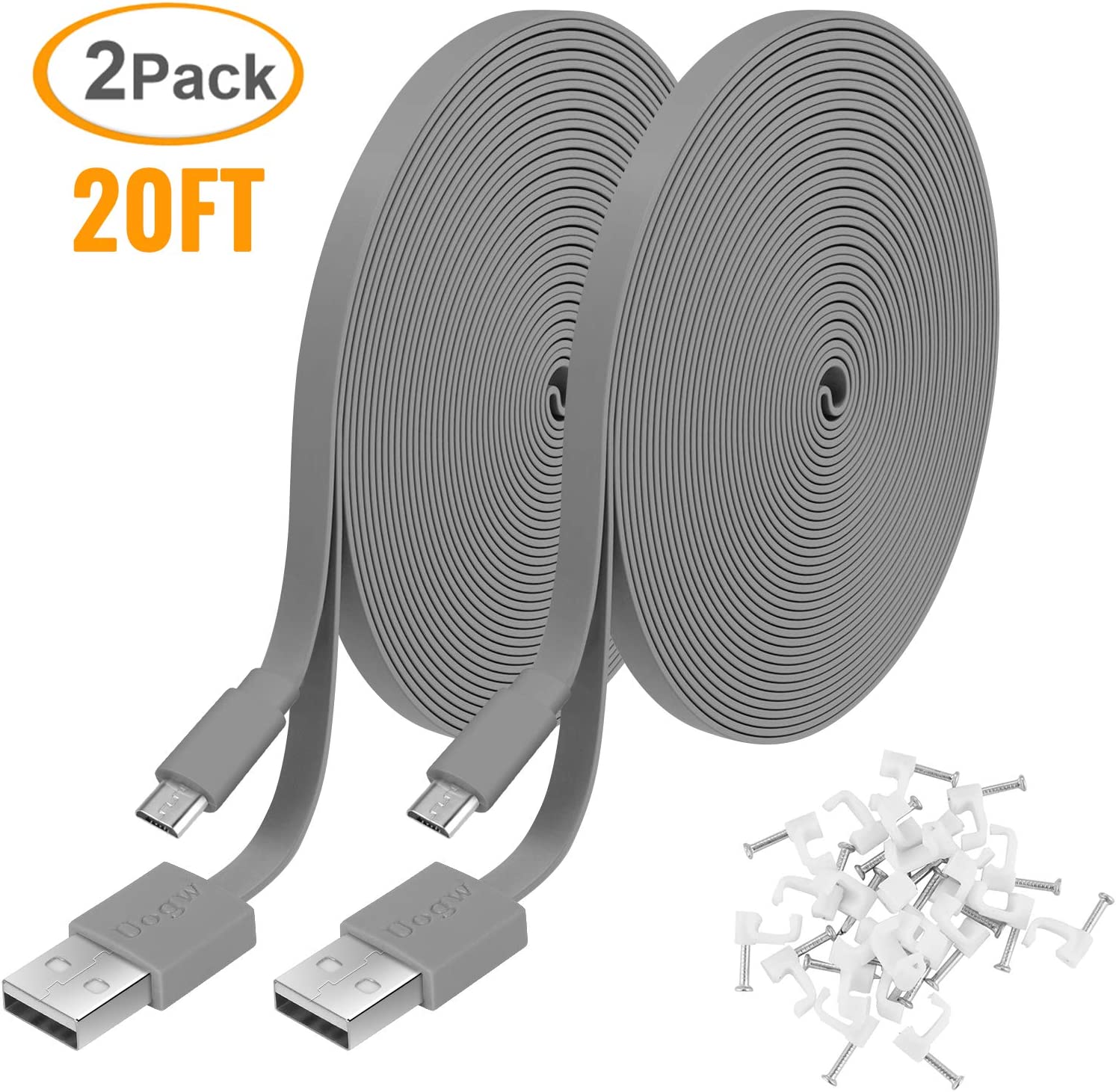 2 Pack 20FT Power Extension Cable Compatible with WyzeCam, Wyze Cam Pan, NestCam Indoor,Blink,Amazon Cloud Camera,USB to Micro USB Durable Charging and Data Sync Cord(White)