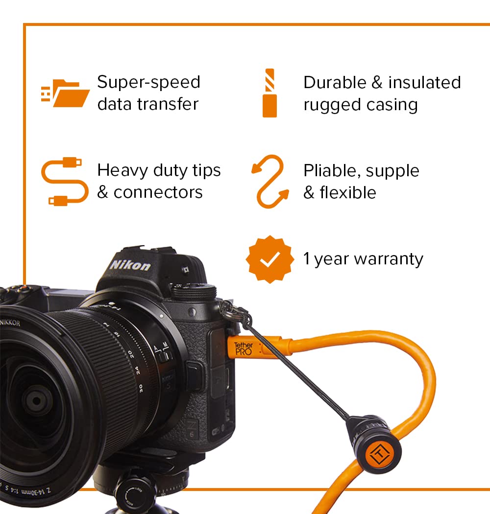 The Tether Pro USB-C to USB-C Right Angle Cable is designed and manufactured using the latest USB technology to ensure consistent and reliable conductivity. TetherPro USB cables are used by the best pros in the industry, and Tether Tools is committed to providing the fastest and most reliable transfers to keep your tethered workflow running at optimal speeds.