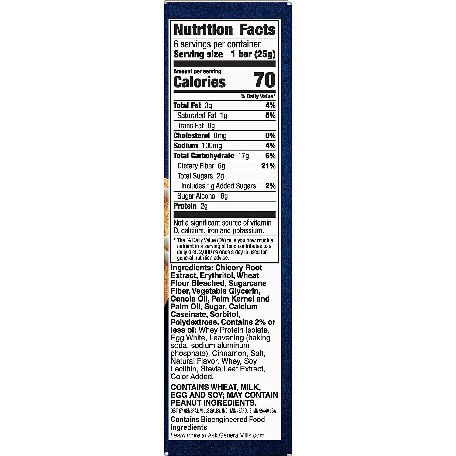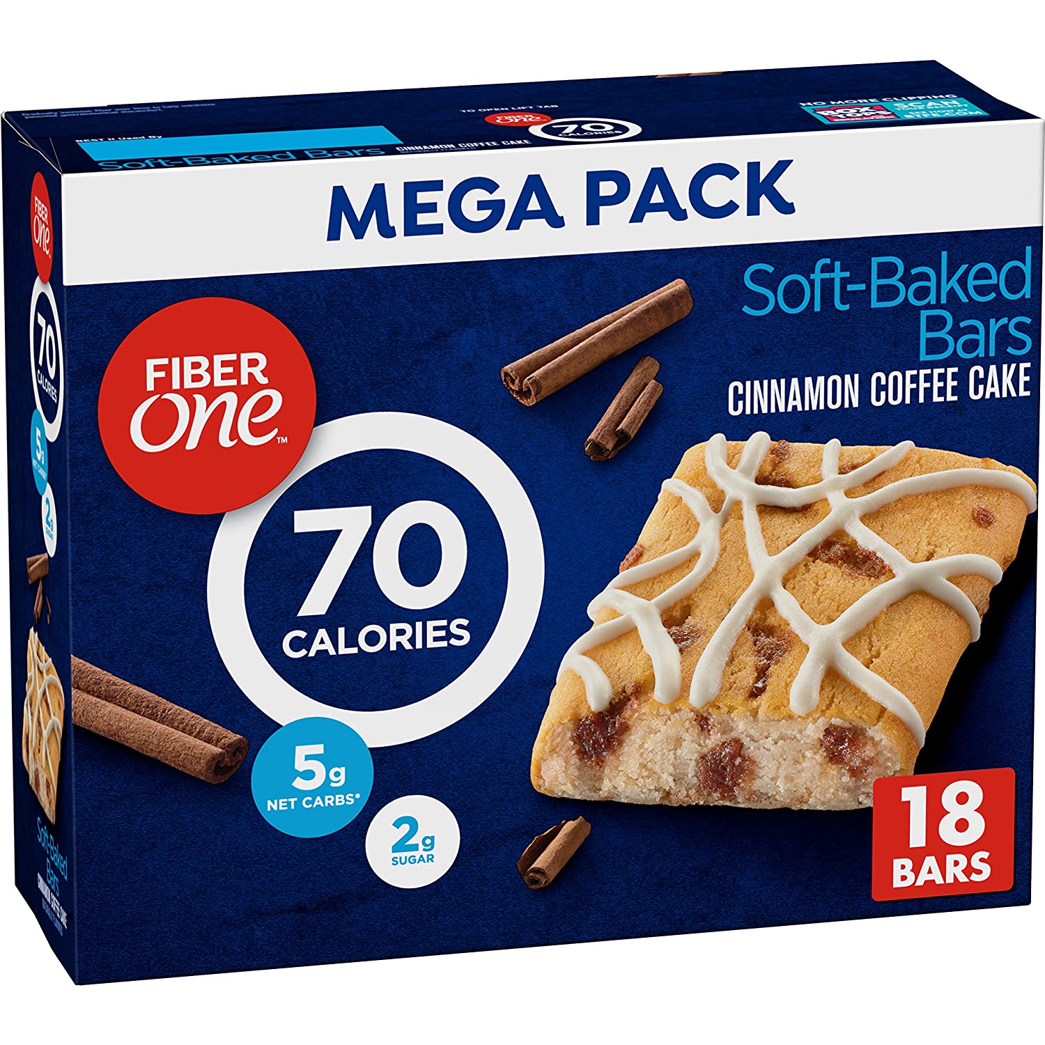 Enjoy an indulgent moment without any of the guilt with Fiber One 70 Calorie Soft-Baked Bars. These soft-baked Fiber One bars have only 70 calories and two grams of sugar for a delicious fiber bar you can feel good about eating as part of a balanced diet. A wholesome combination of low net carbs along with delicious taste so you'll feel like one smart cookie when you say 'yes' to your sweet tooth. Diets high in fiber can help keep your digestive system on track. Don’t compromise on great taste when you can enjoy the irresistable taste of cinnamon coffee cake in these 70 Calorie Soft-Baked Bars. Contains 18 bars in total.